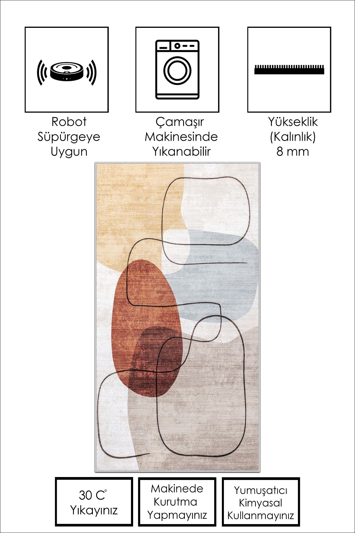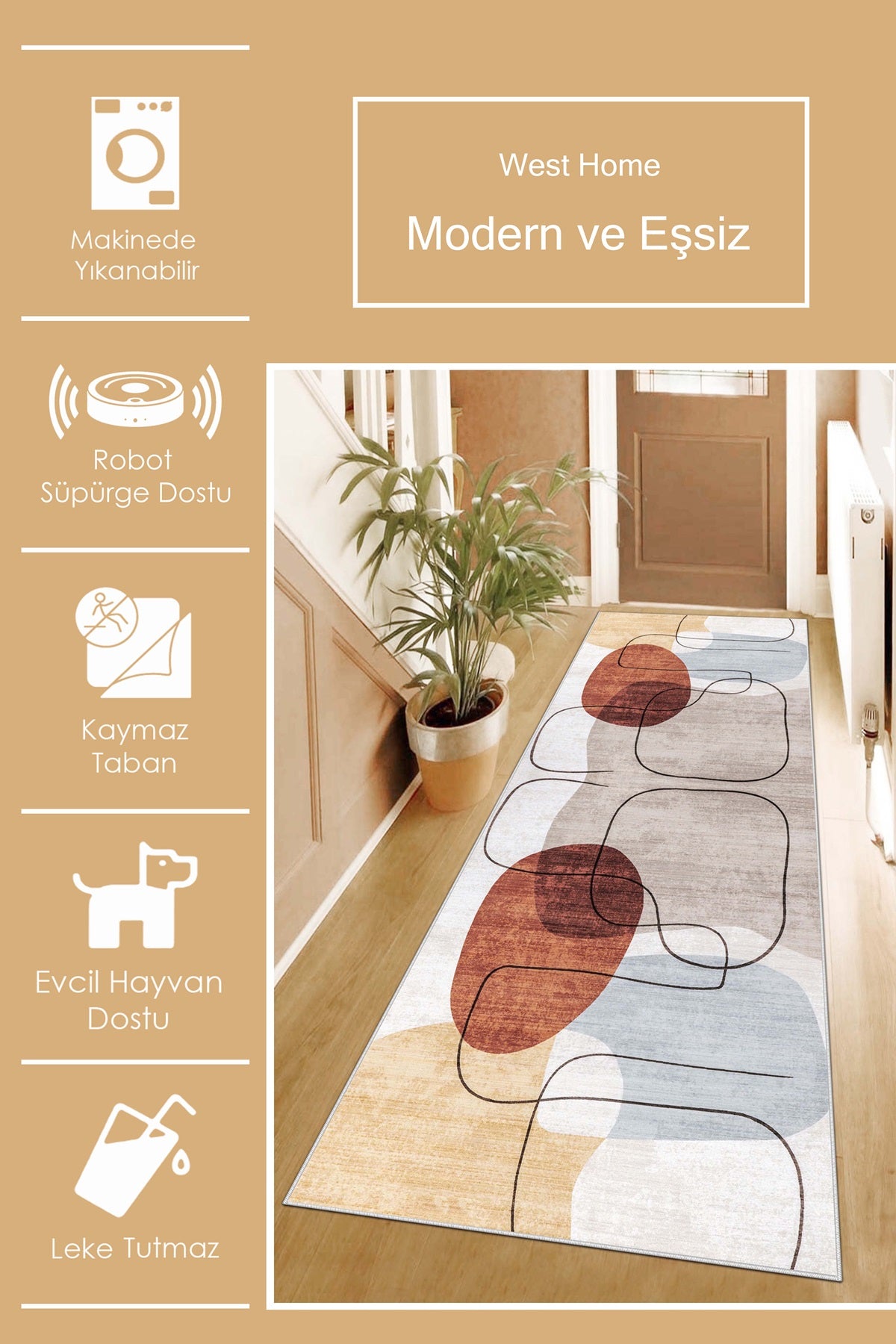 West Home Dijital Baskılı Yıkanabilir Kaymaz Taban Salon, Mutfak ve Yolluk Halısı-578 Multy