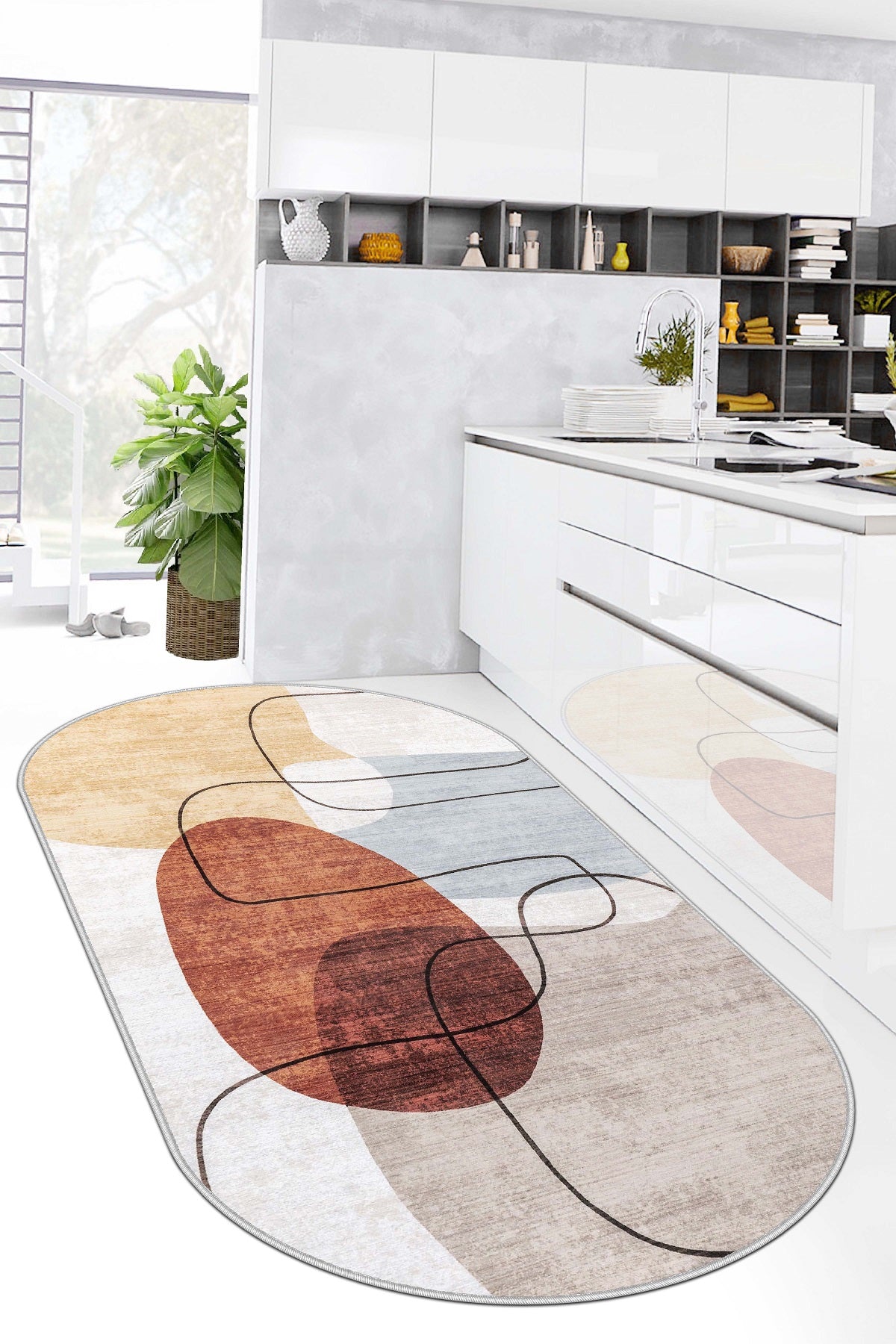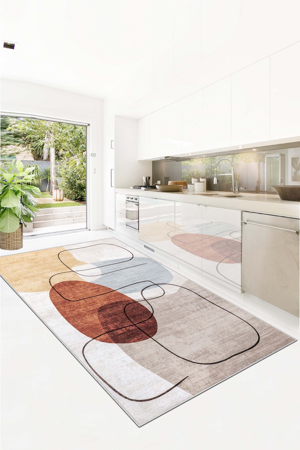 West Home Dijital Baskılı Yıkanabilir Kaymaz Taban Salon, Mutfak ve Yolluk Halısı-455 Beige