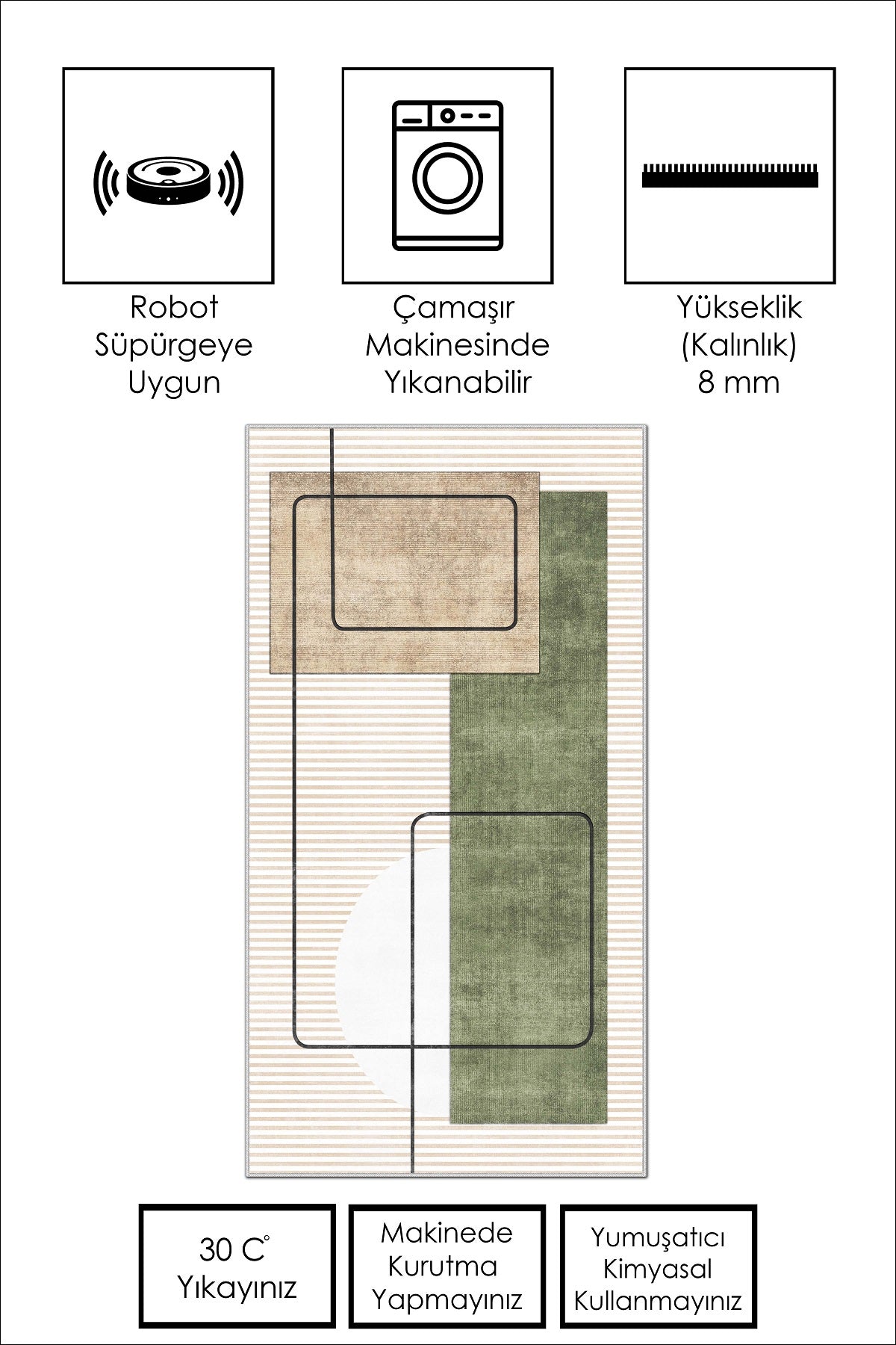 West Home Dijital Baskılı Yıkanabilir Kaymaz Taban Salon, Mutfak ve Yolluk Halısı-579 Beige