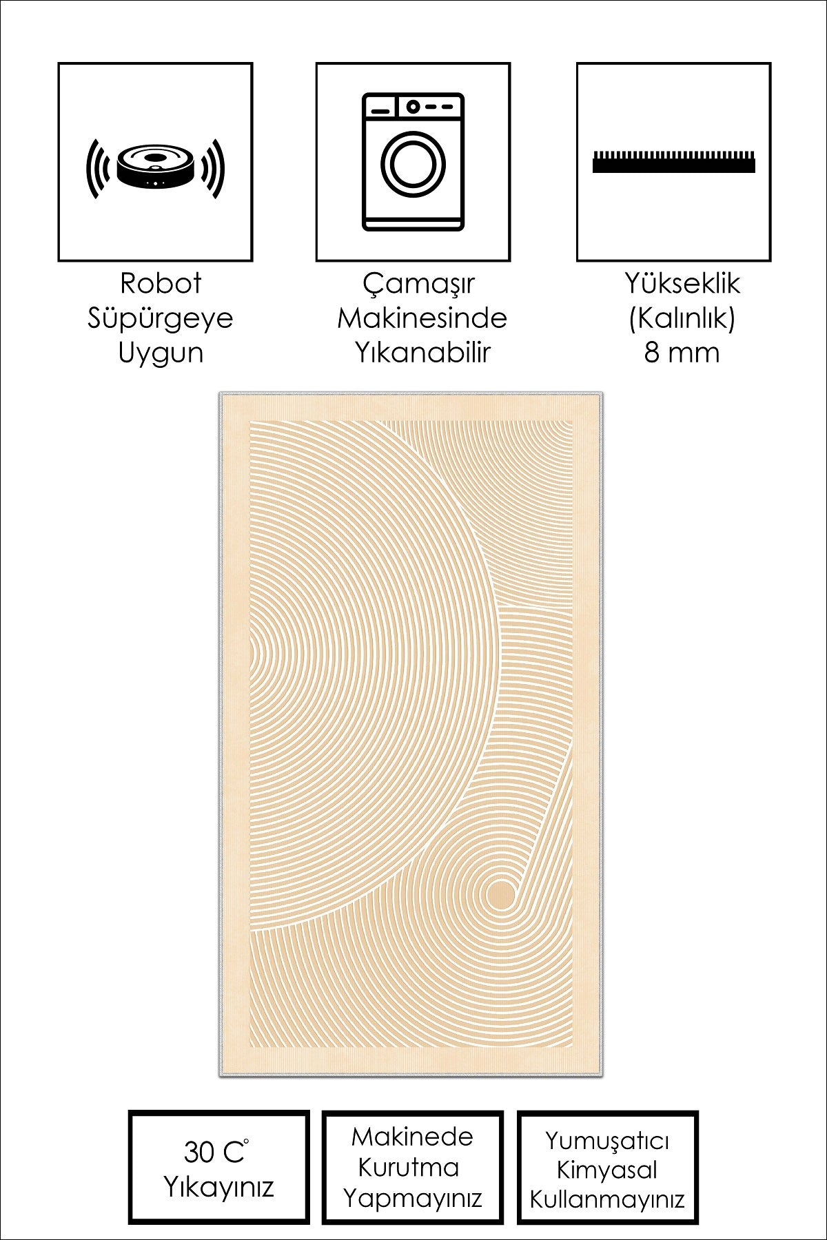 West Home Dijital Baskılı Yıkanabilir Kaymaz Taban Salon, Mutfak ve Yolluk Halısı-455 Beige