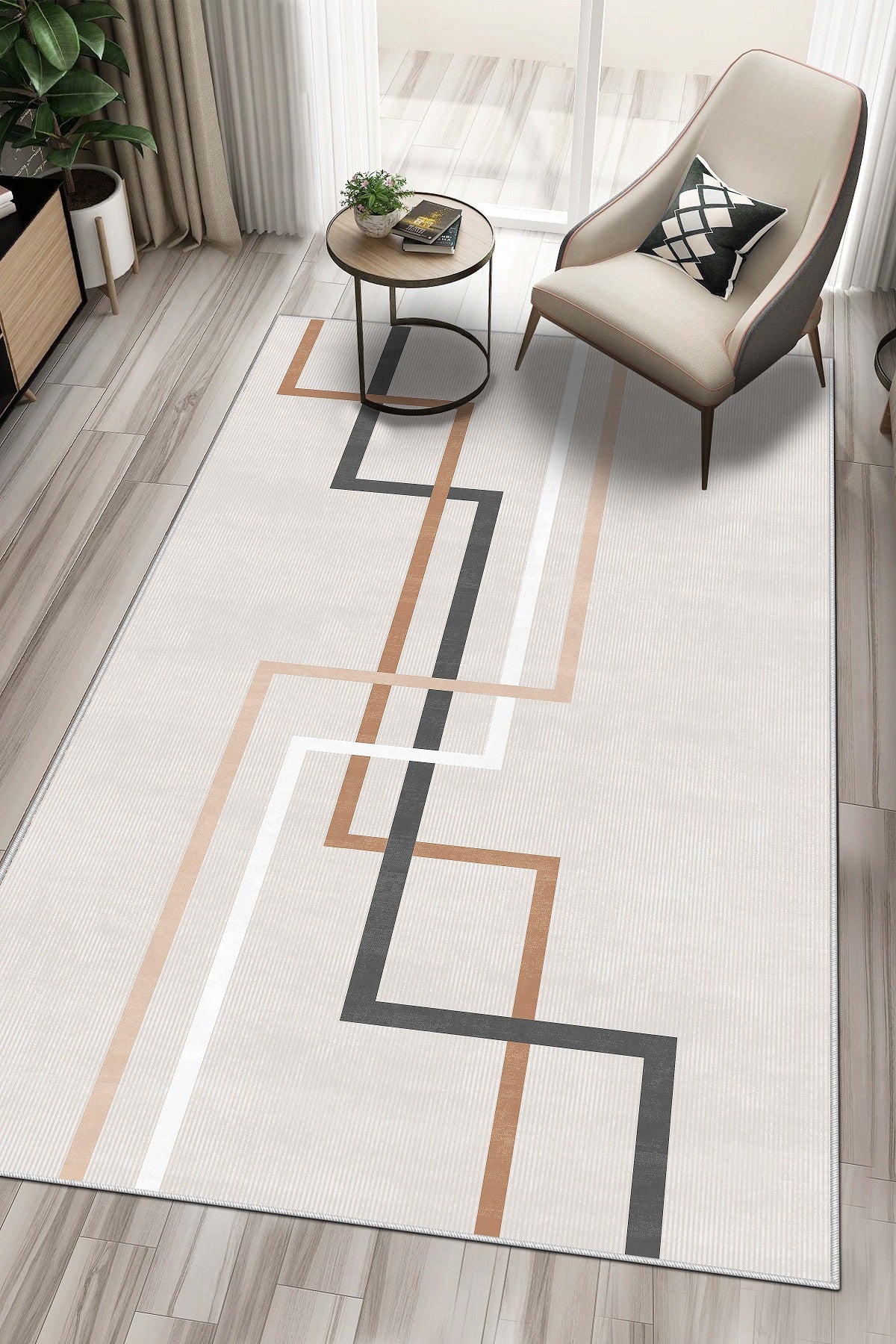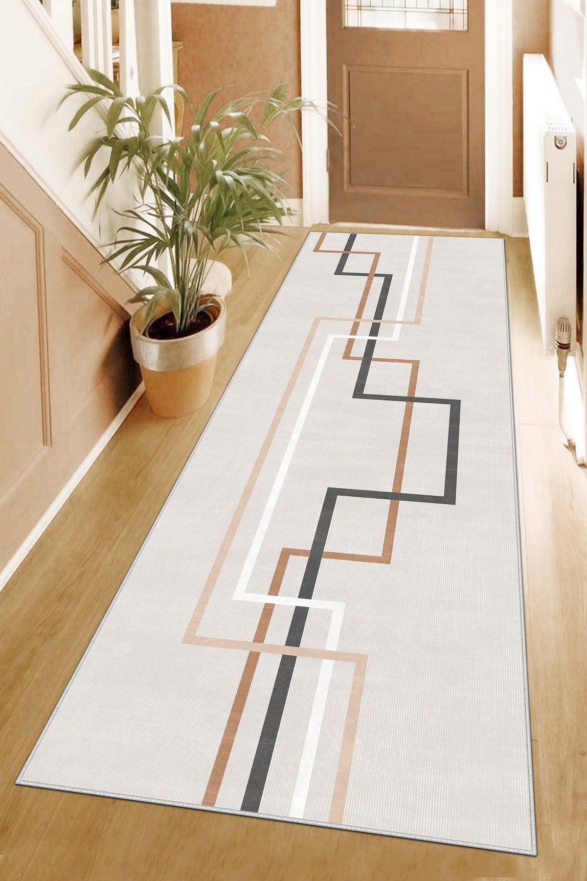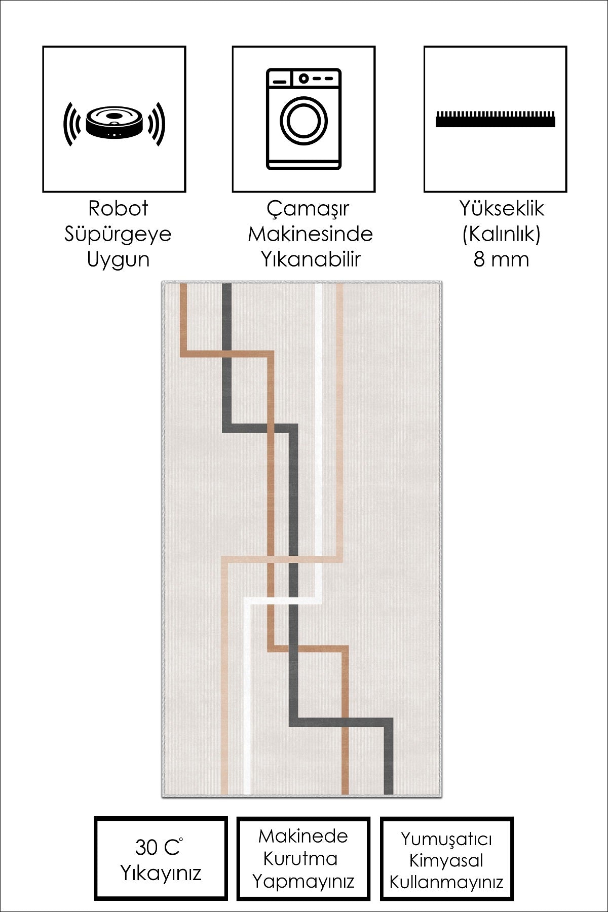 West Home Dijital Baskılı Yıkanabilir Kaymaz Taban Salon, Mutfak ve Yolluk Halısı-455 Beige