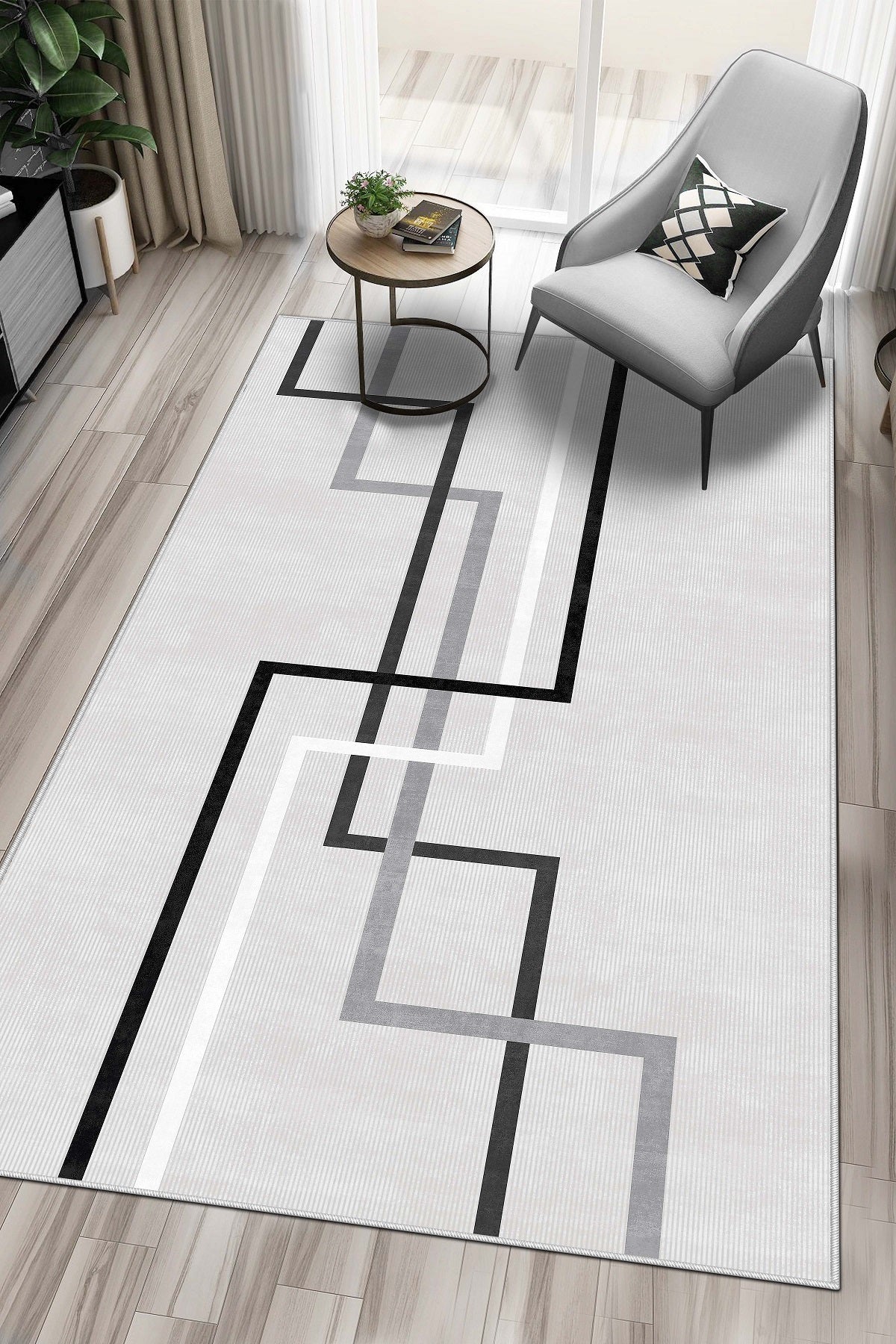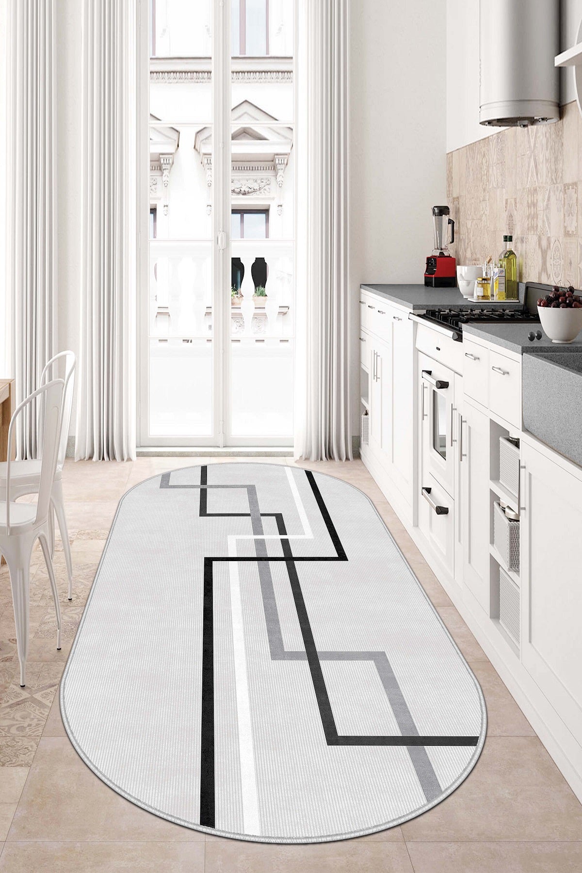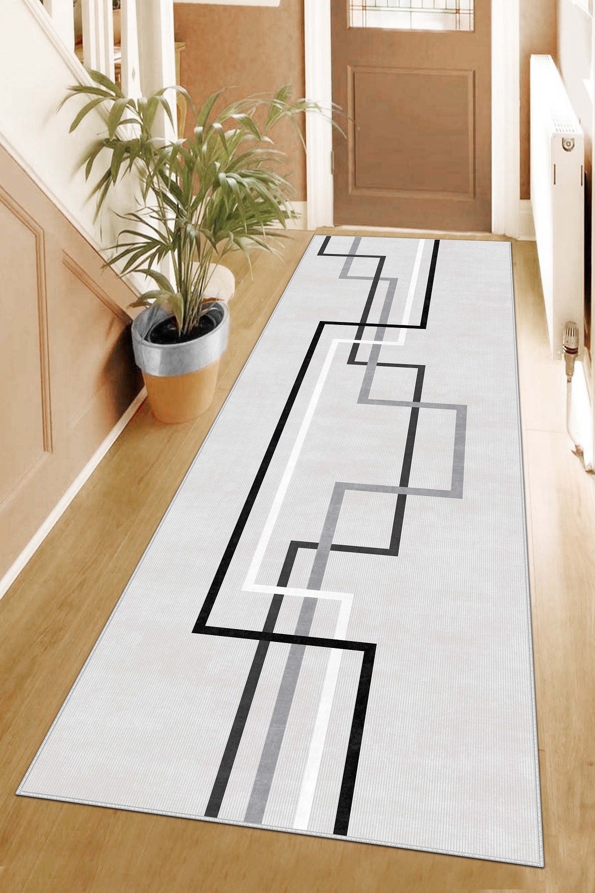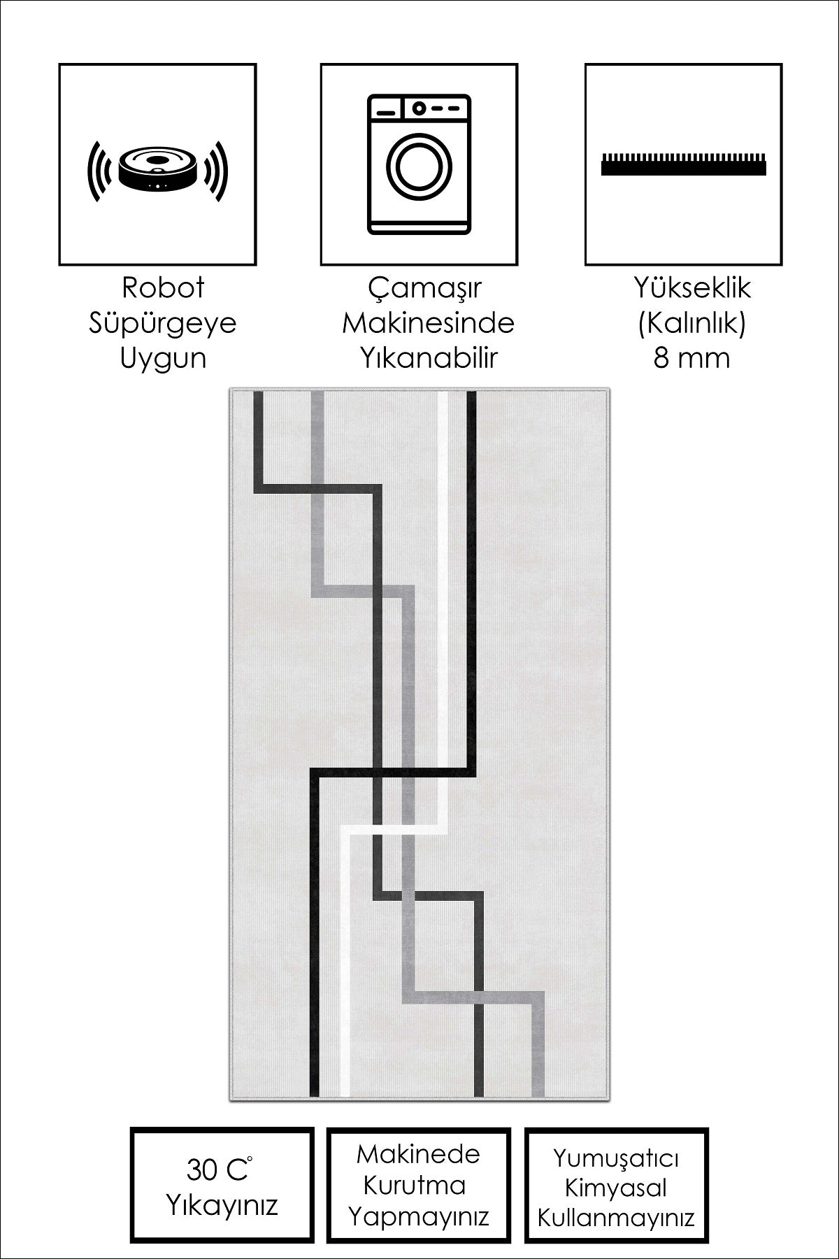West Home Dijital Baskılı Yıkanabilir Kaymaz Taban Salon, Mutfak ve Yolluk Halısı-582 Grey