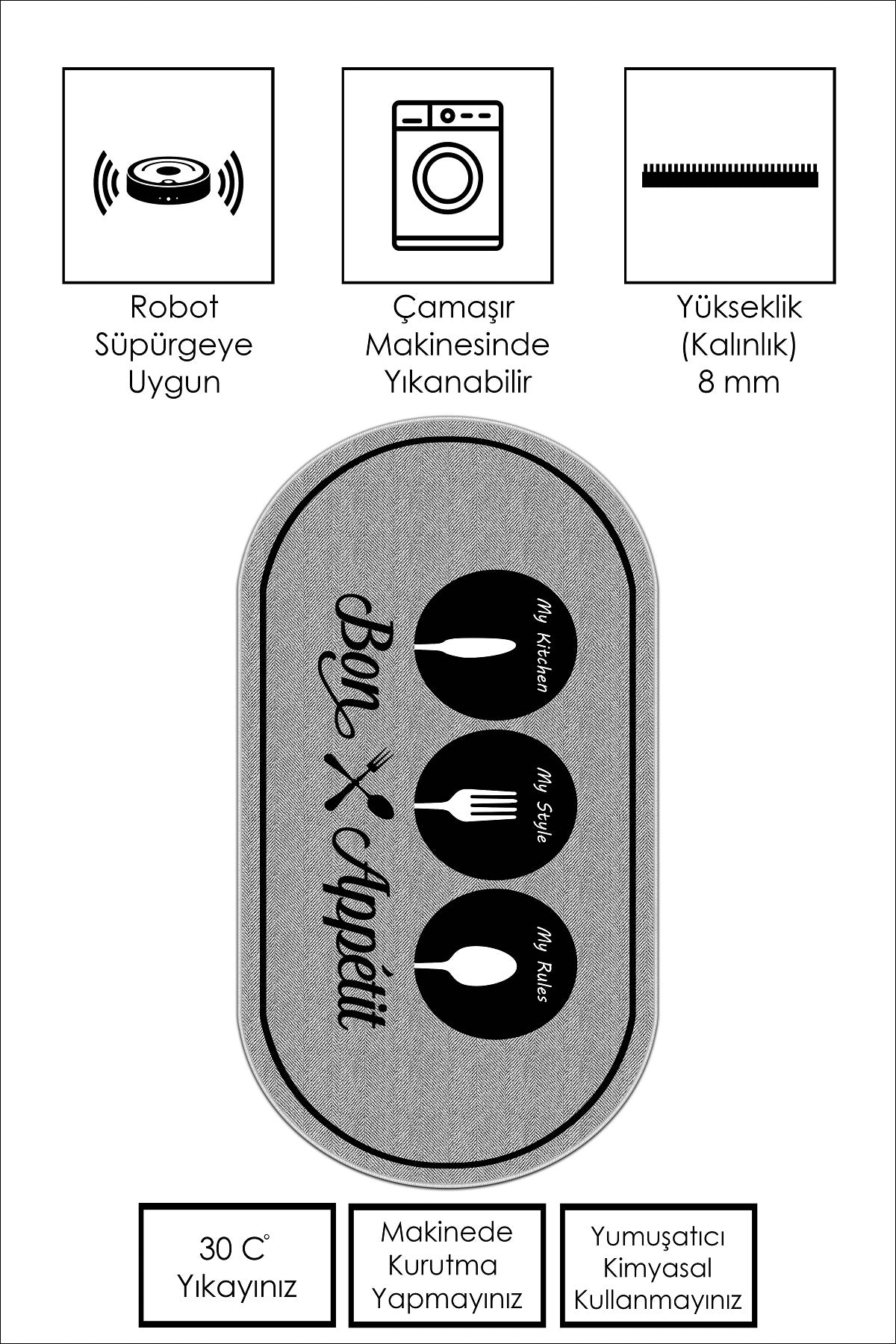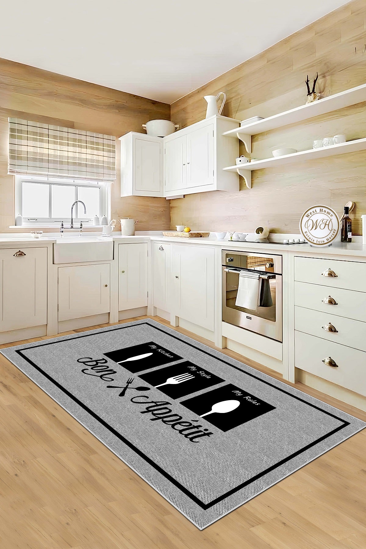 West Home Dijital Baskılı Yıkanabilir Kaymaz Taban Mutfak Halısı-583 Grey