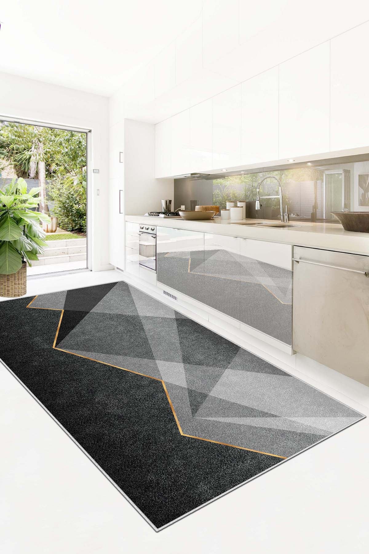 West Home Dijital Baskılı Yıkanabilir Kaymaz Taban Salon, Mutfak ve Yolluk Halısı-585 Grey