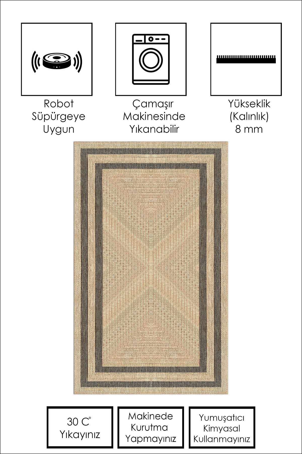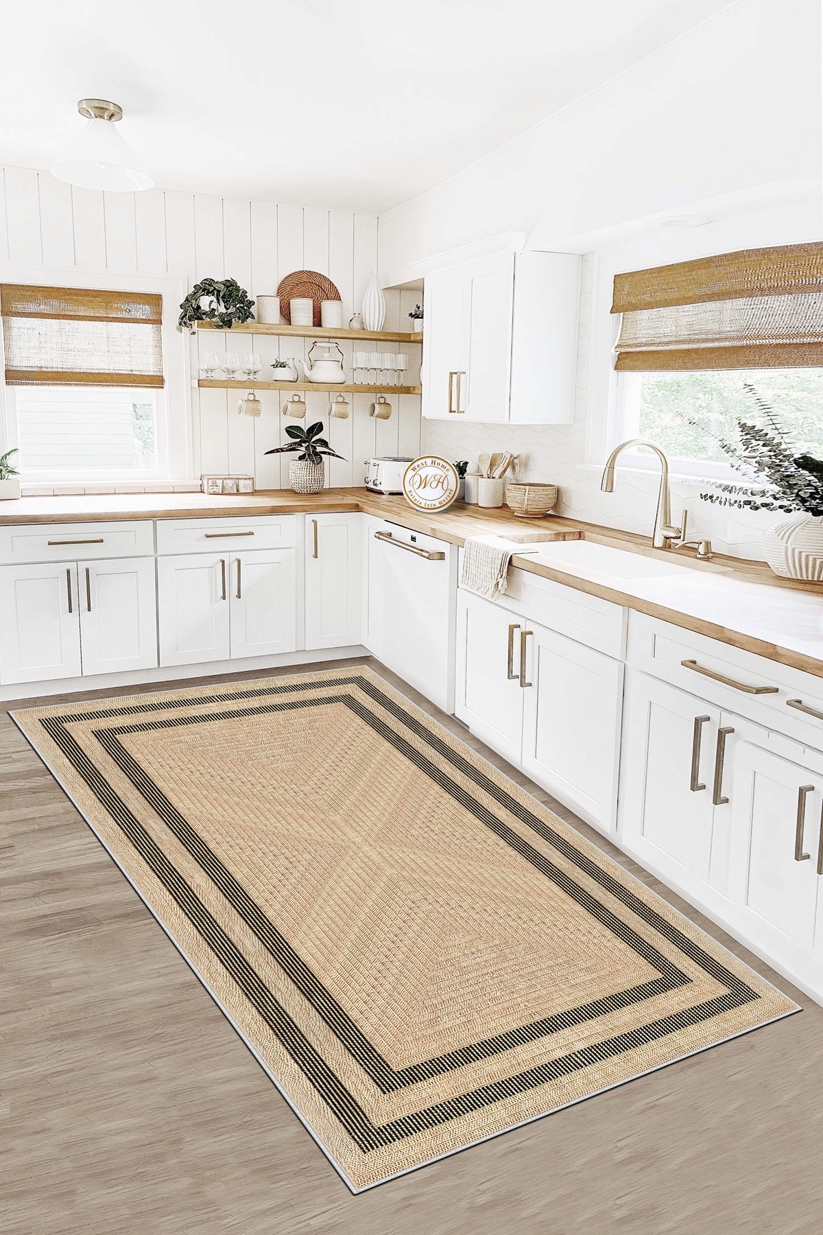 West Home Dijital Baskılı Yıkanabilir Kaymaz Taban Salon, Mutfak ve Yolluk Halısı-594 Beige
