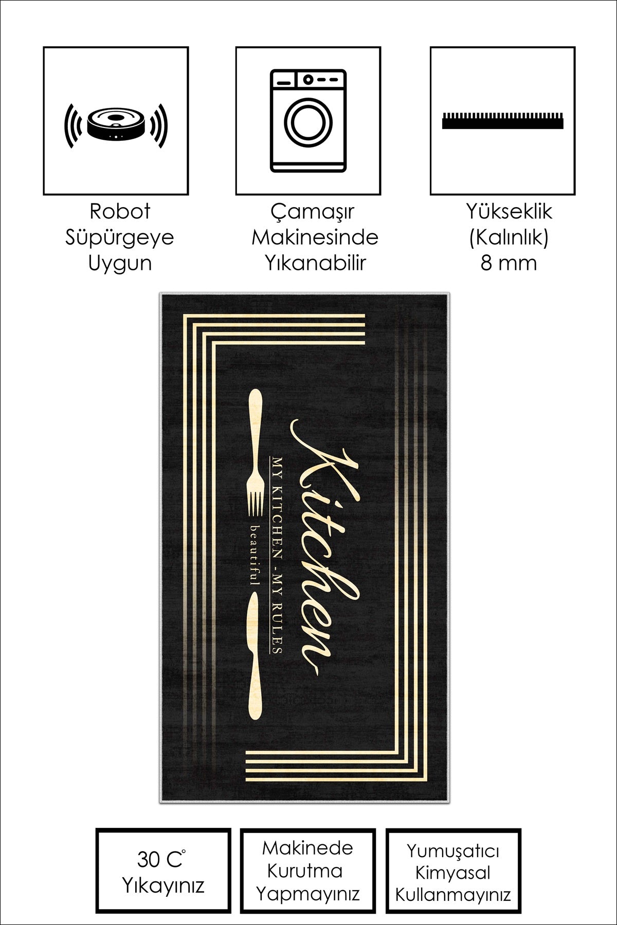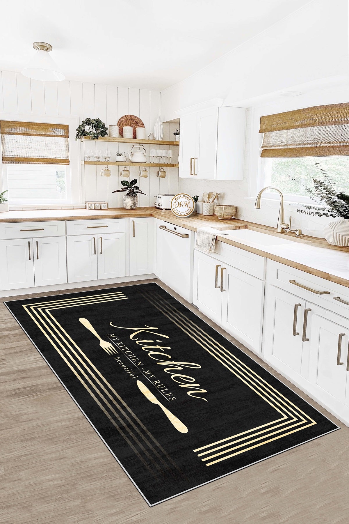 West Home Dijital Baskılı Yıkanabilir Kaymaz Taban Mutfak Halısı-595 Black