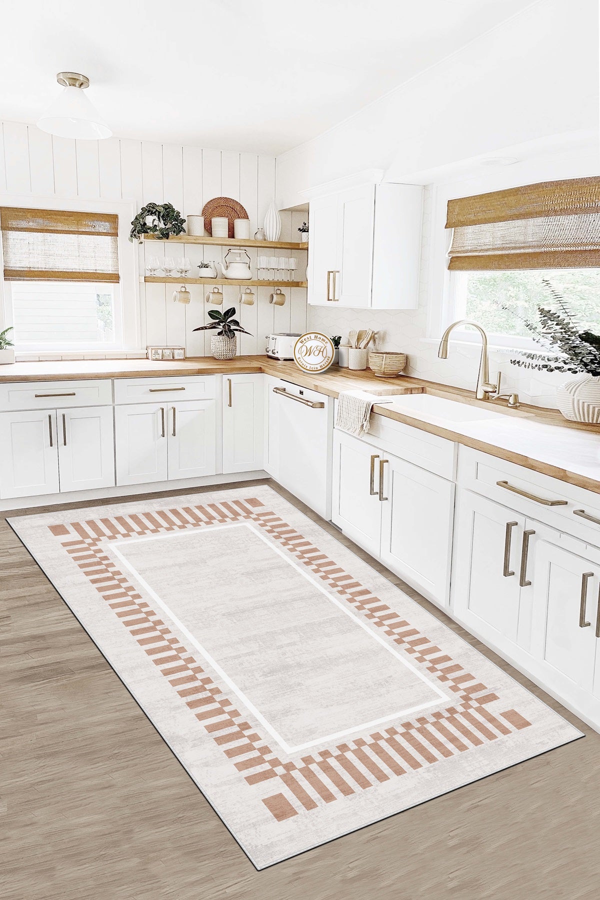 West Home Dijital Baskılı Yıkanabilir Kaymaz Taban Salon, Mutfak ve Yolluk Halısı-596 Beige
