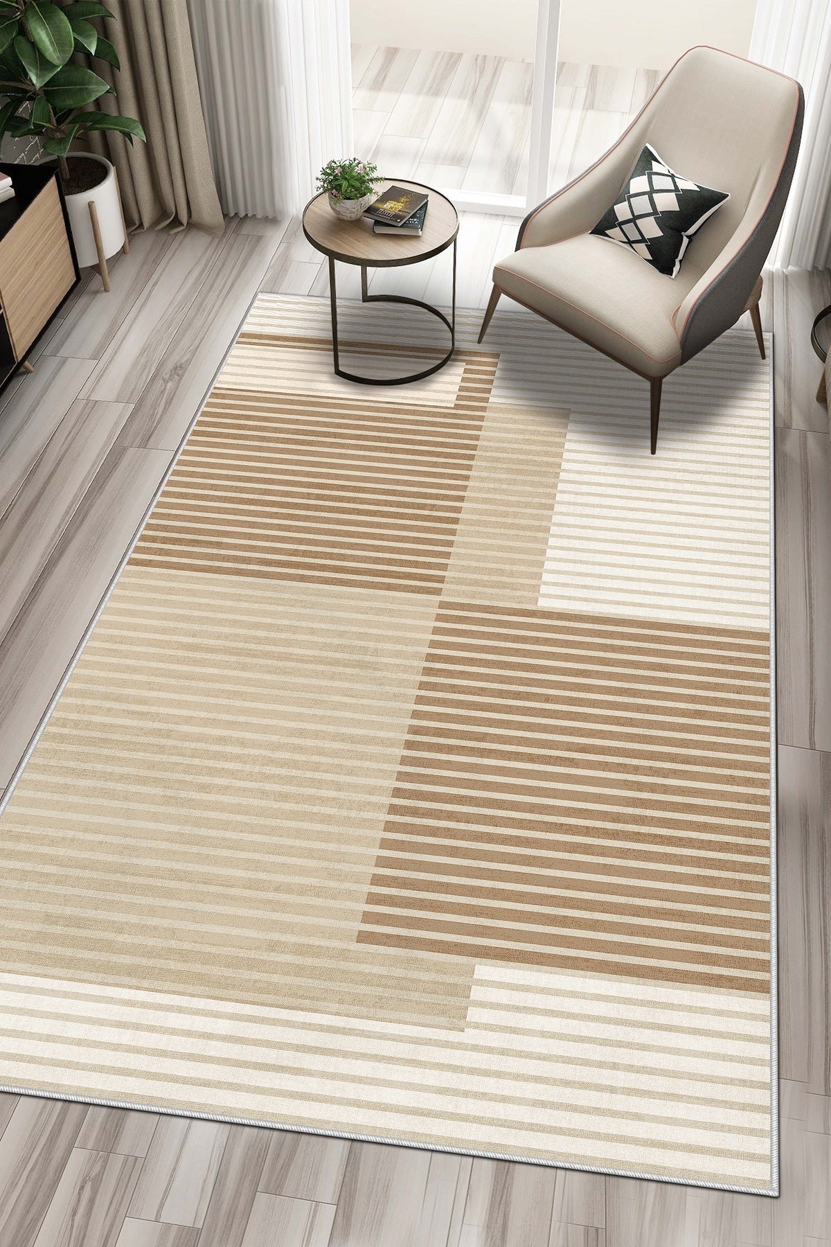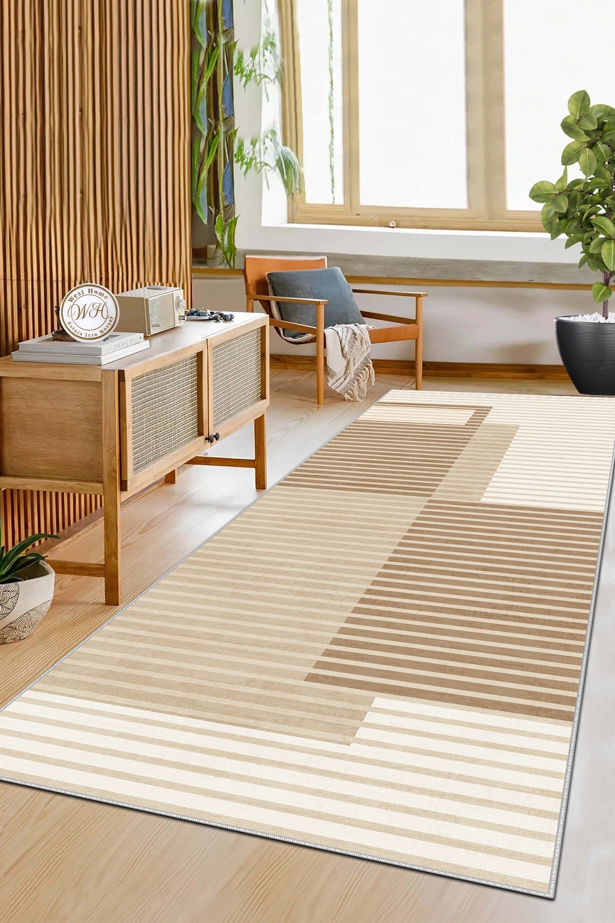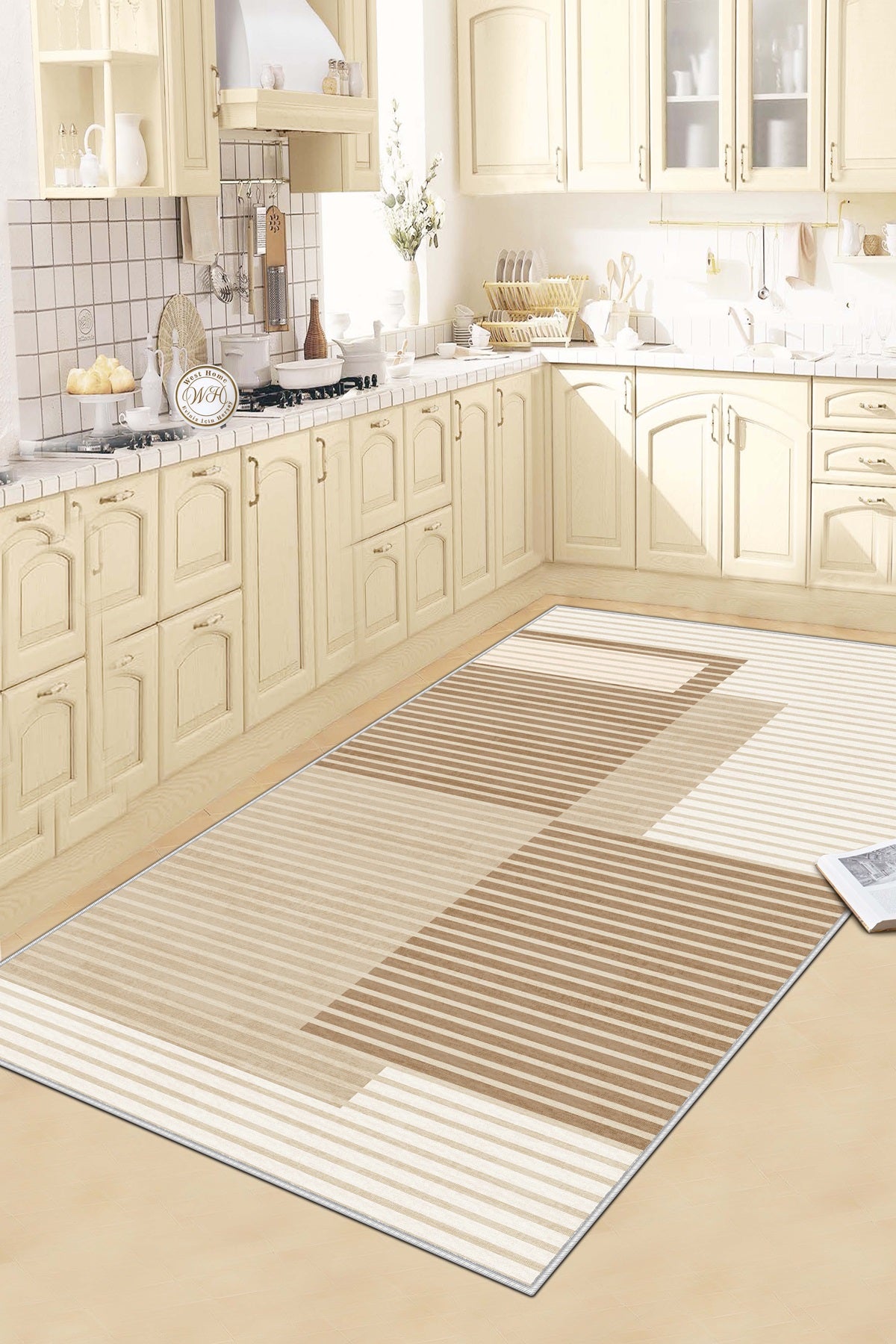 West Home Dijital Baskılı Yıkanabilir Kaymaz Taban Salon, Mutfak ve Yolluk Halısı-455 Beige