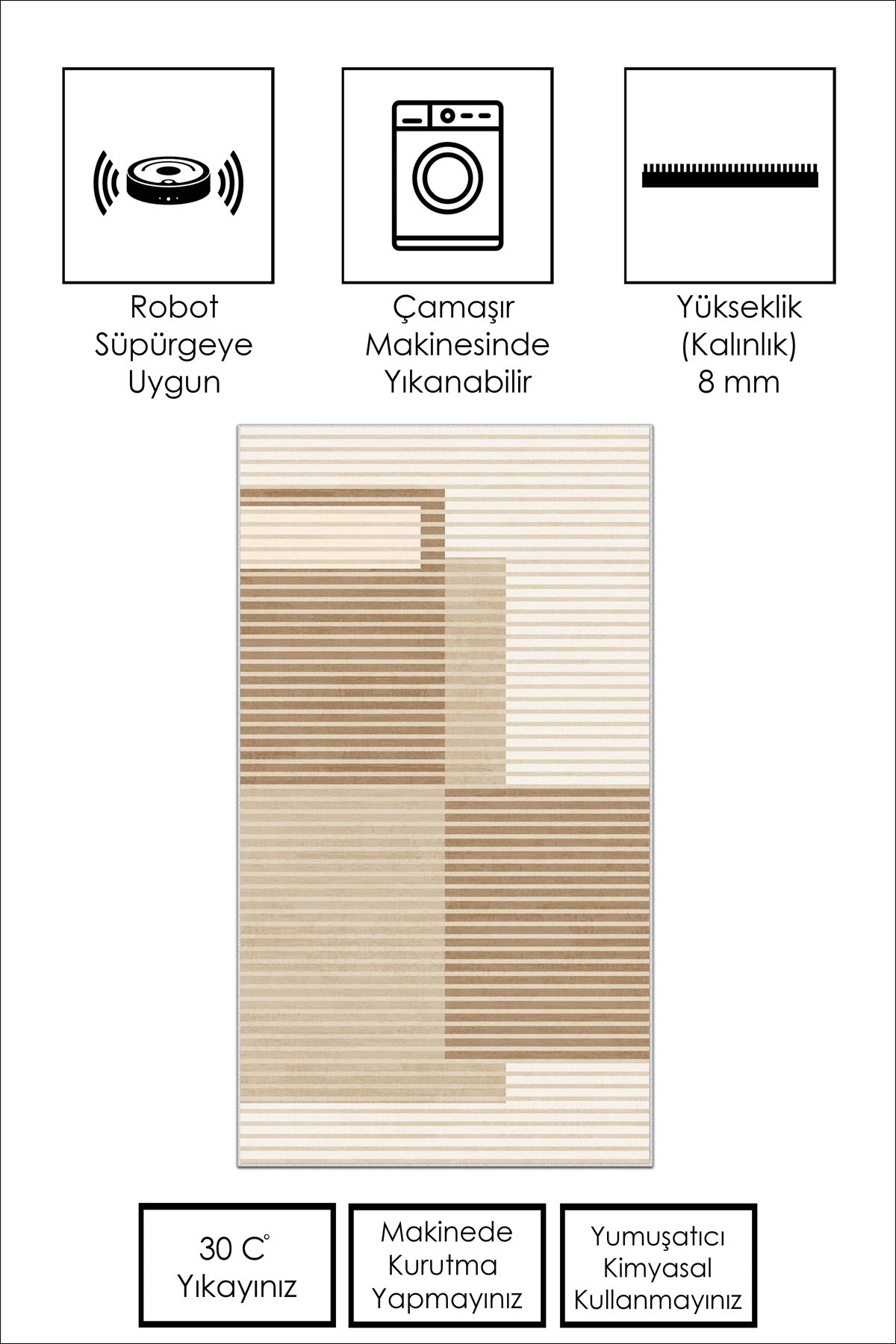 West Home Dijital Baskılı Yıkanabilir Kaymaz Taban Salon, Mutfak ve Yolluk Halısı-601 Beige