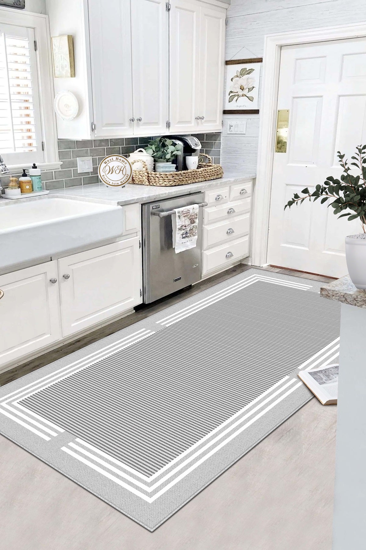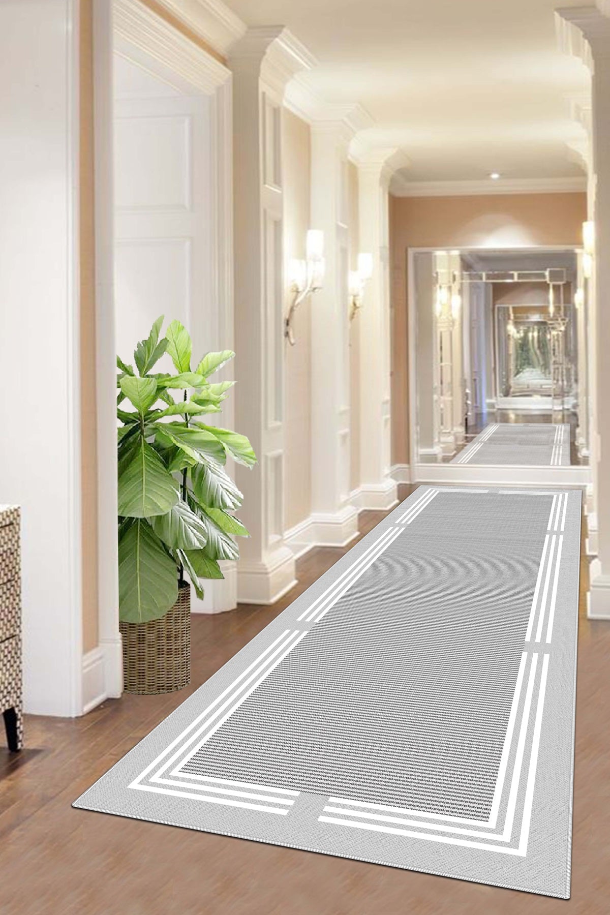 West Home Dijital Baskılı Yıkanabilir Kaymaz Taban Salon, Mutfak ve Yolluk Halısı-603 Grey