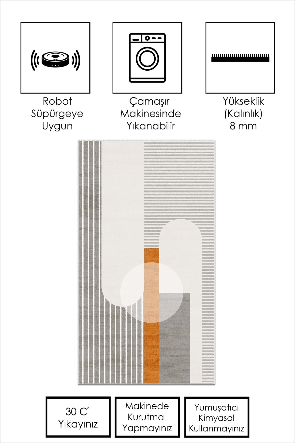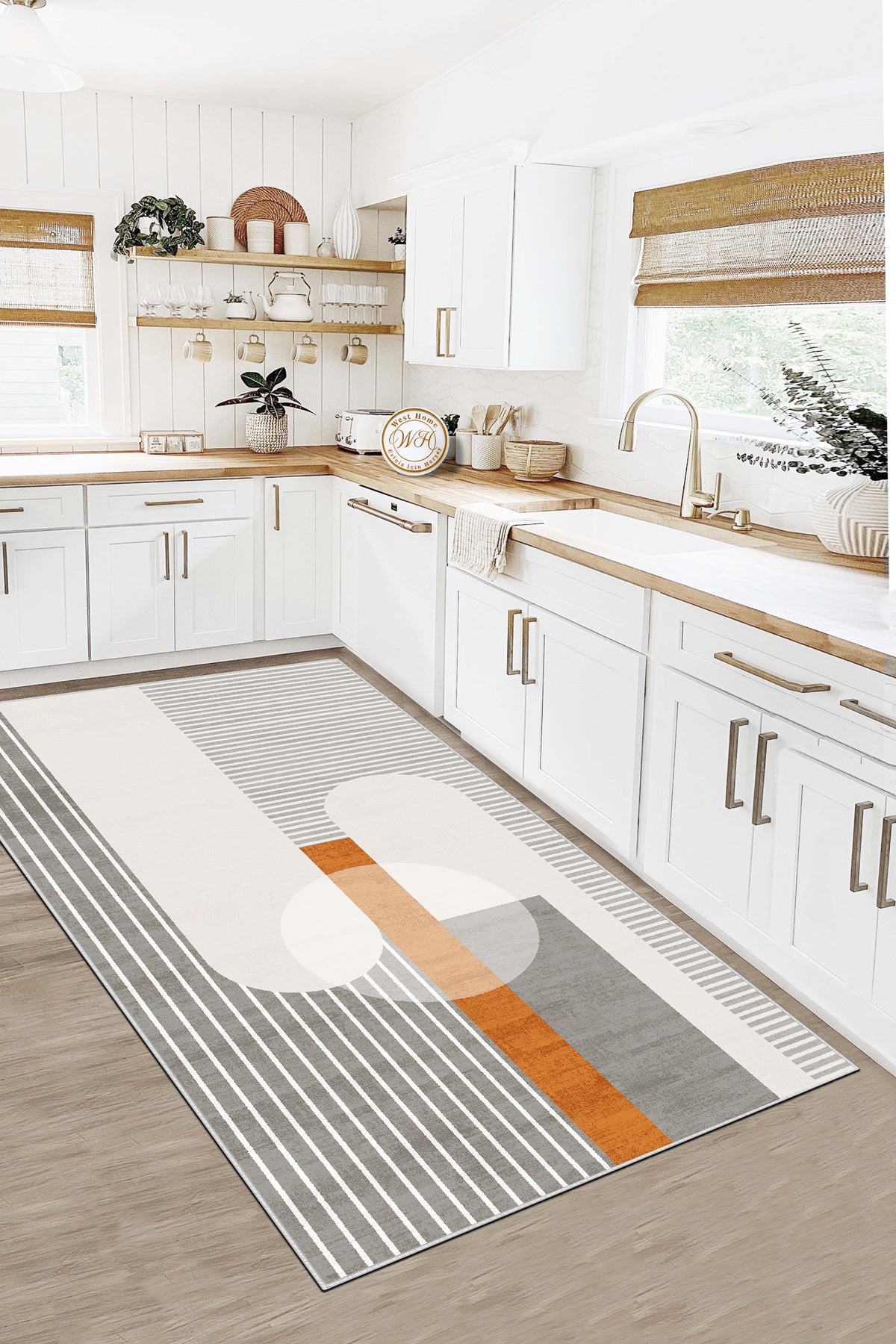 West Home Dijital Baskılı Yıkanabilir Kaymaz Taban Salon, Mutfak ve Yolluk Halısı-455 Beige