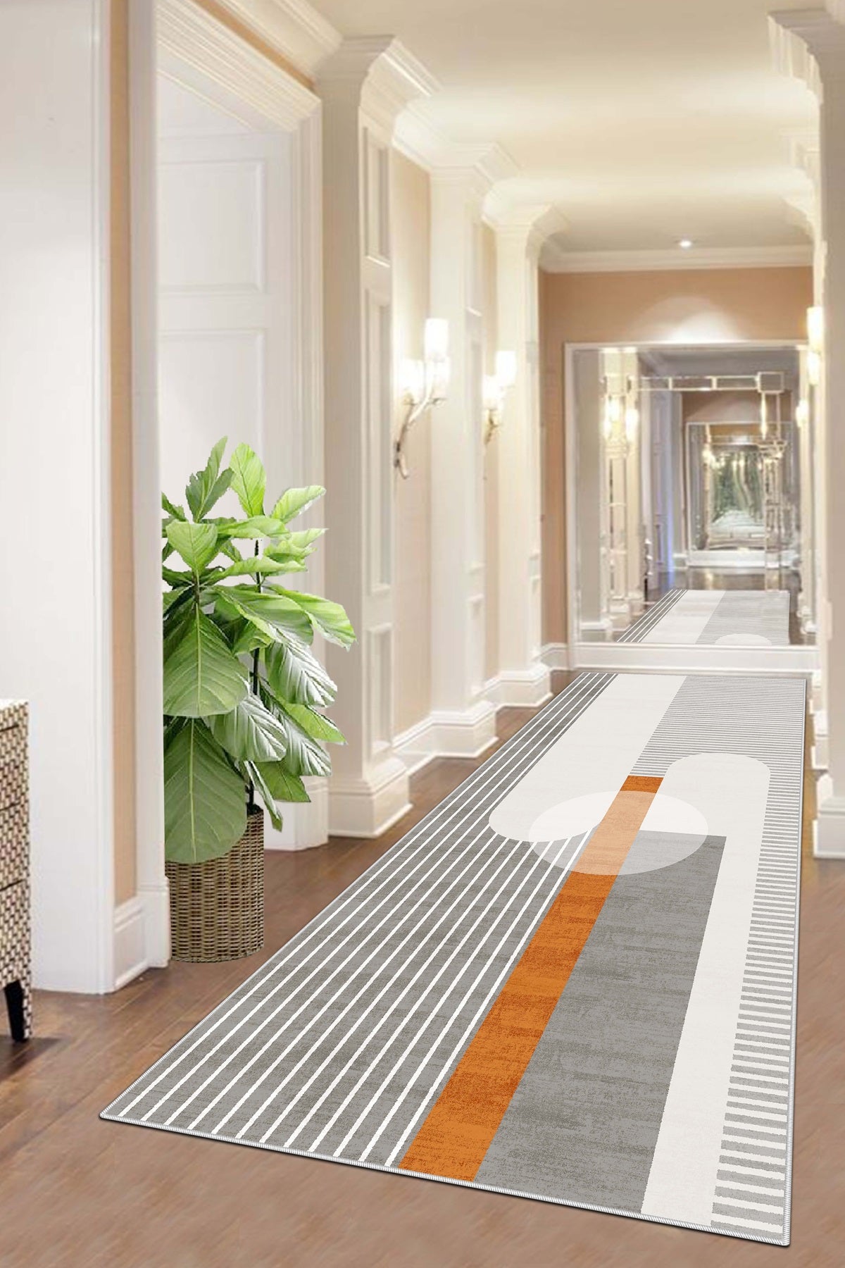 West Home Dijital Baskılı Yıkanabilir Kaymaz Taban Salon, Mutfak ve Yolluk Halısı-445 Grey