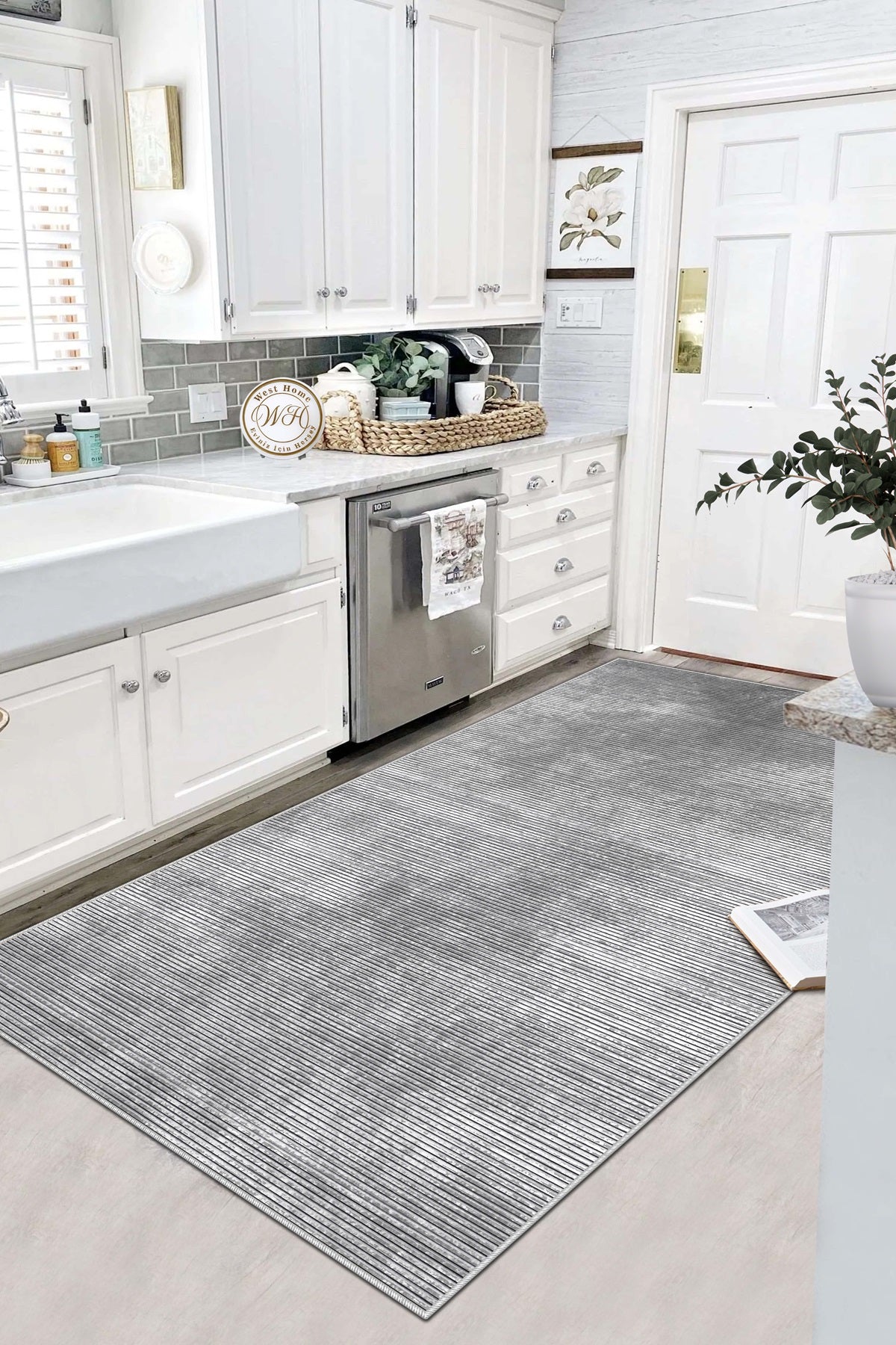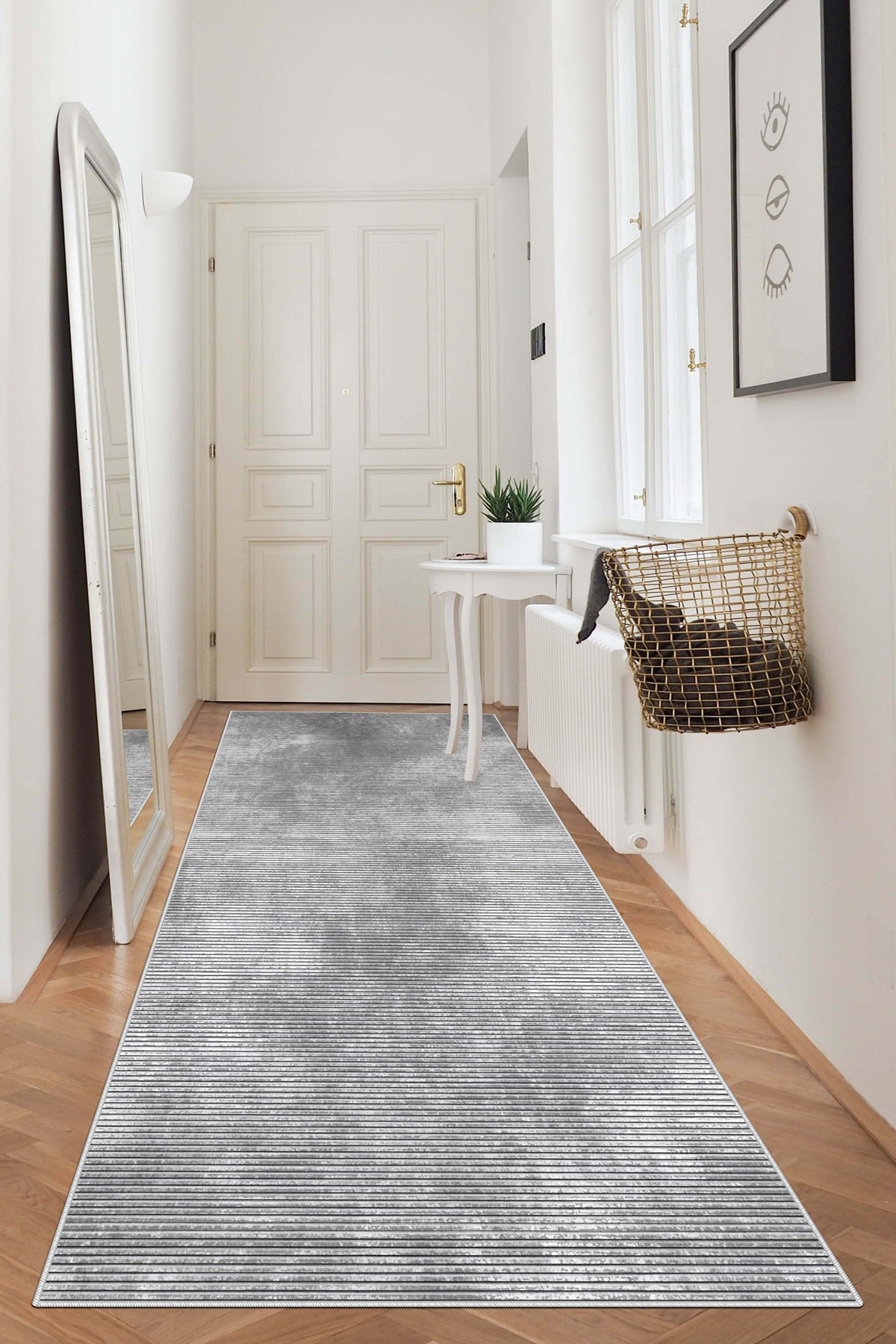 West Home Dijital Baskılı Yıkanabilir Kaymaz Taban Salon, Mutfak ve Yolluk Halısı-445 Grey