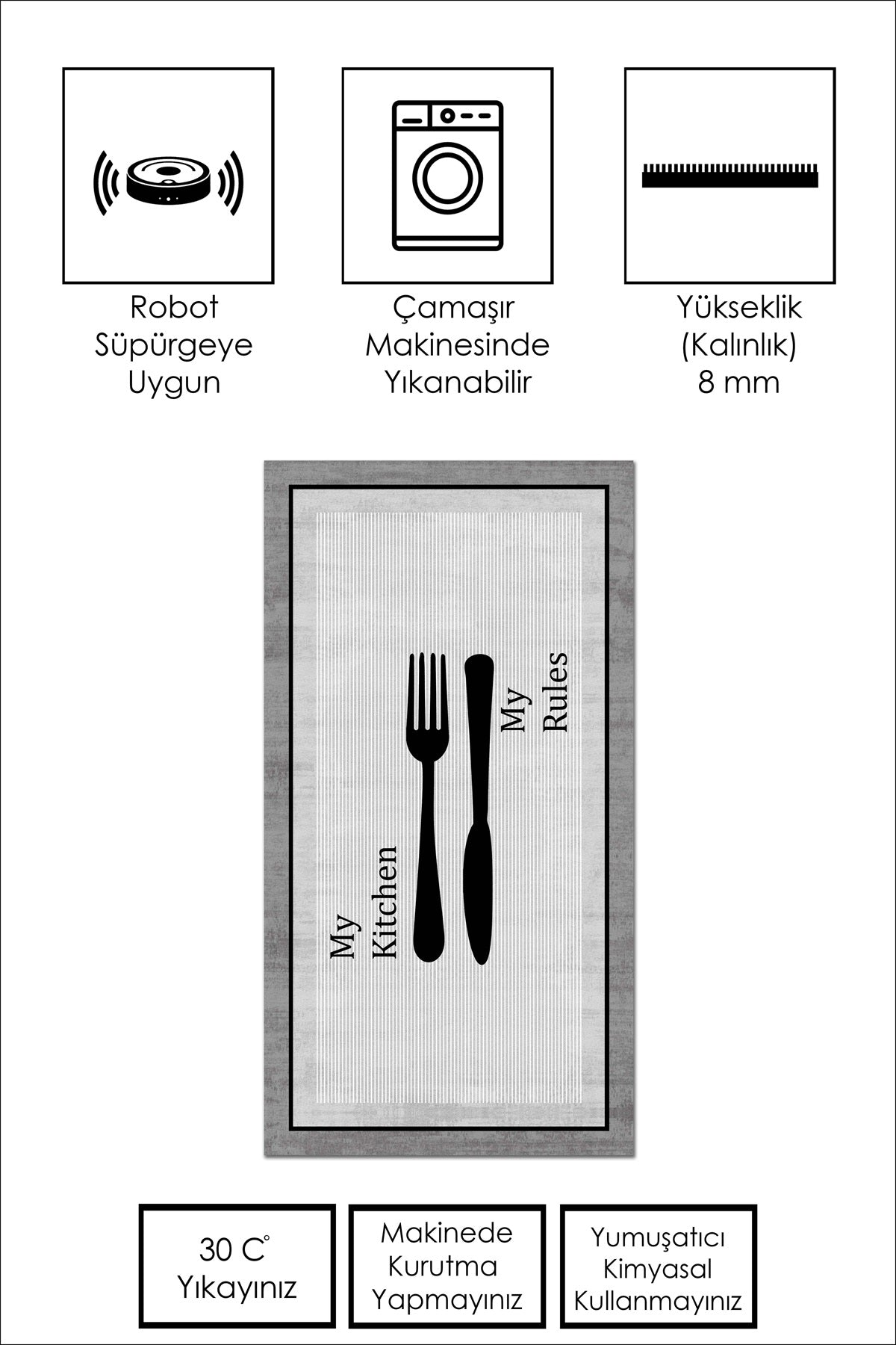 West Home Dijital Baskılı Yıkanabilir Kaymaz Taban Mutfak Halısı-611 Grey