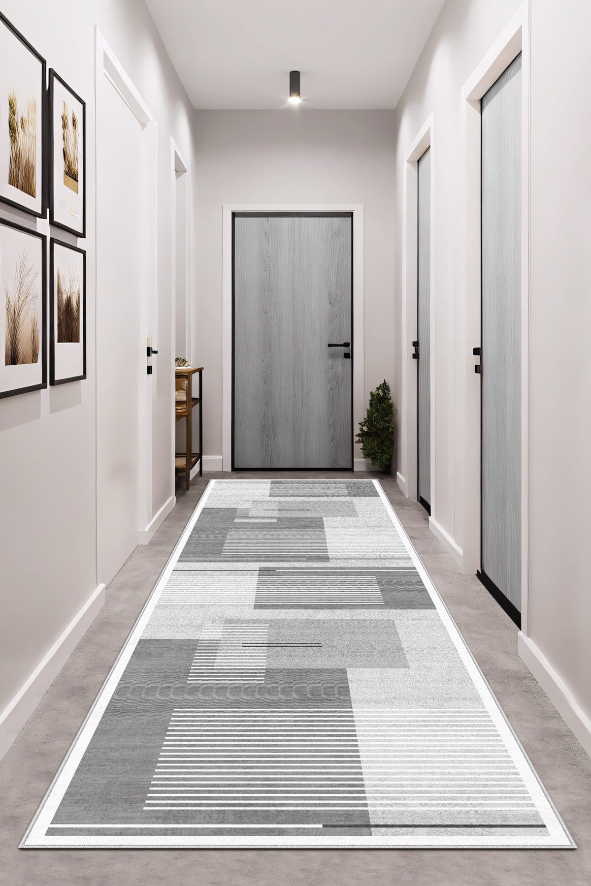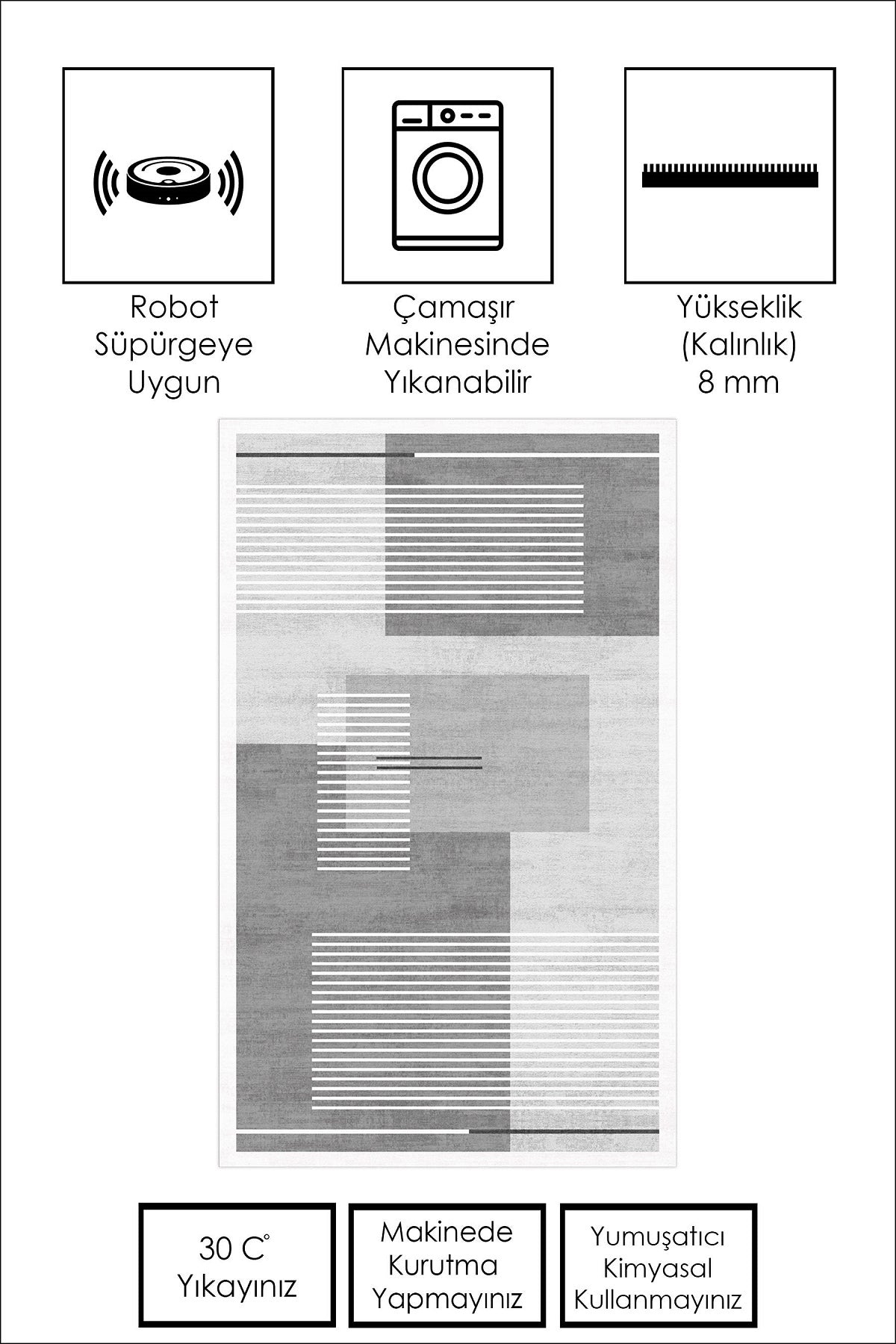 West Home Dijital Baskılı Yıkanabilir Kaymaz Taban Salon, Mutfak ve Yolluk Halısı-445 Grey