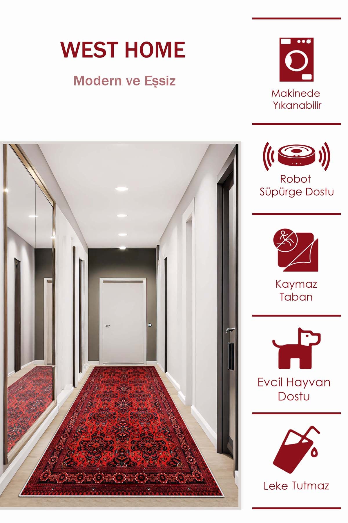 West Home Dijital Baskılı Yıkanabilir Kaymaz Taban Salon, Mutfak ve Yolluk Halısı-620 Red