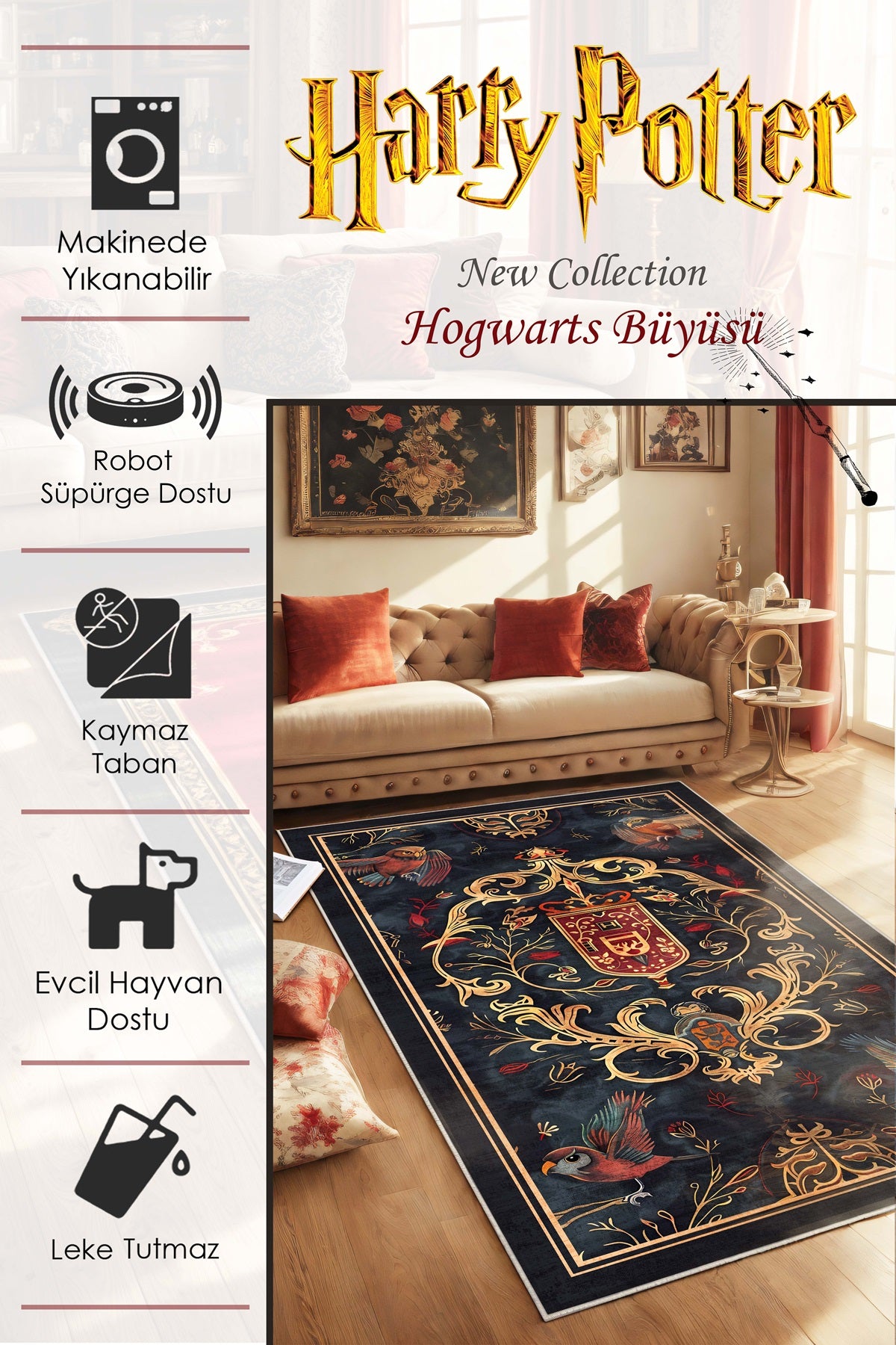 West Home Dijital Baskılı Yıkanabilir Kaymaz Taban Salon, Mutfak ve Yolluk Halısı-455 Beige