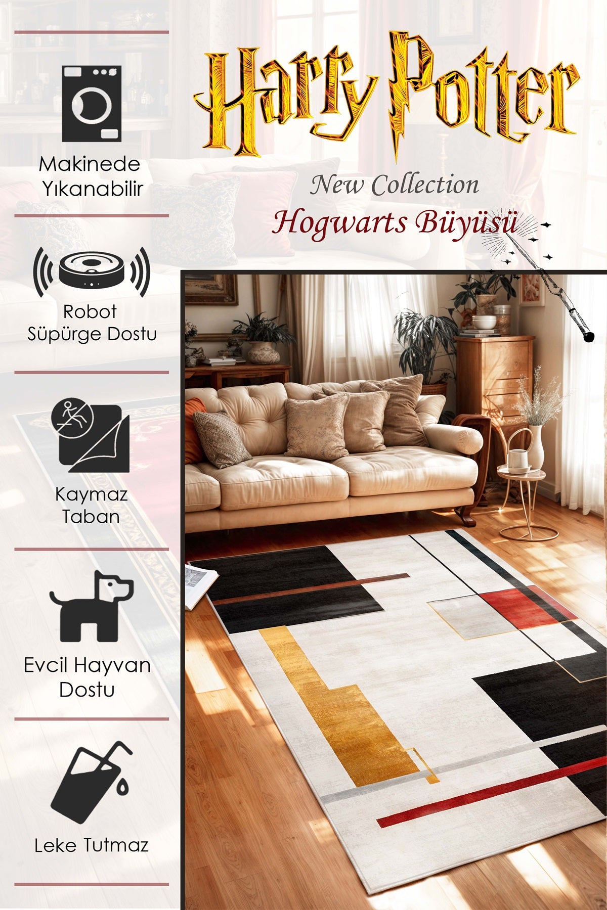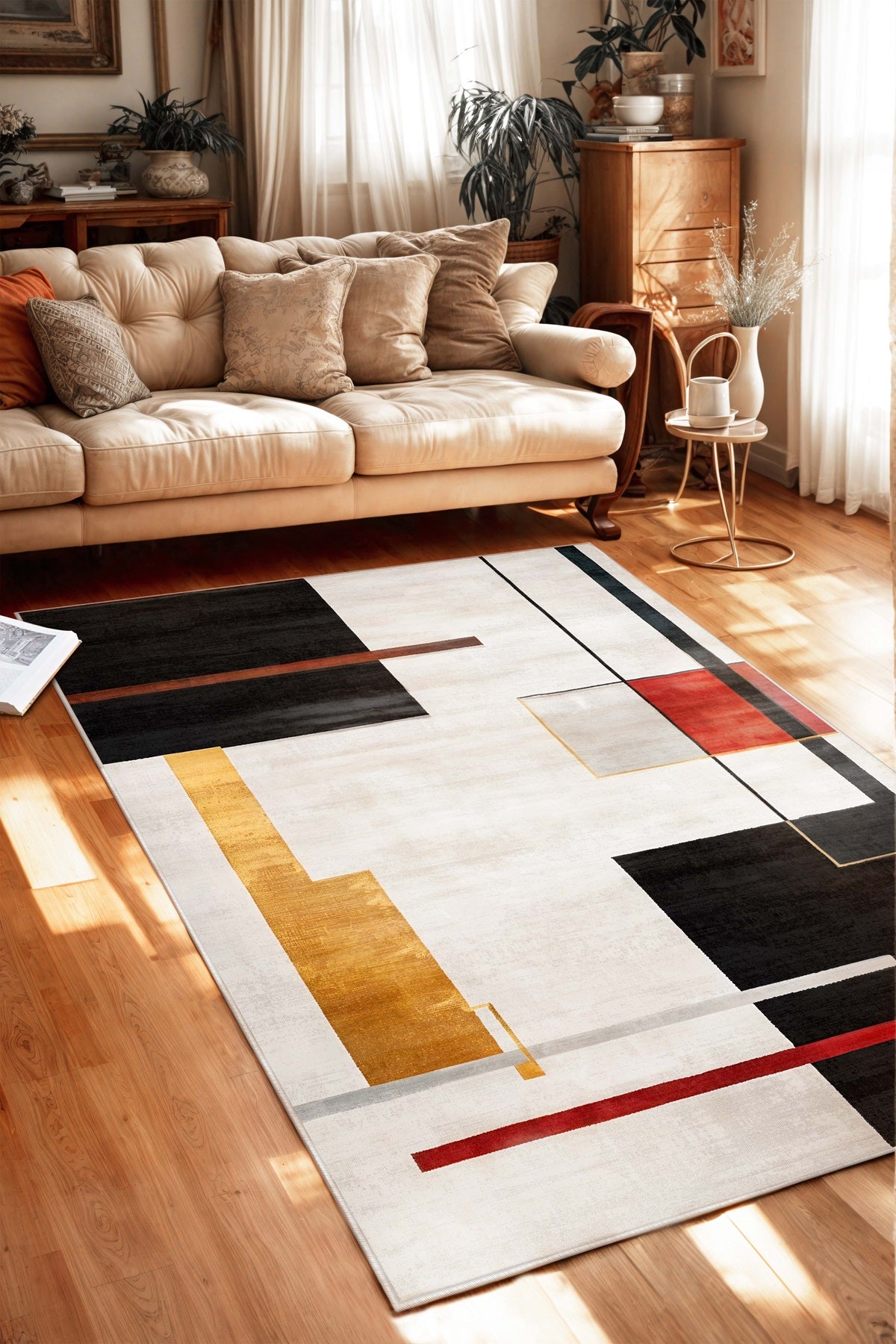 West Home Dijital Baskılı Yıkanabilir Kaymaz Taban Salon, Mutfak ve Yolluk Halısı-455 Beige