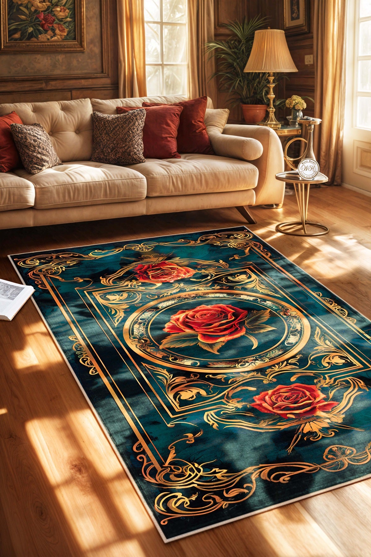West Home Dijital Baskılı Yıkanabilir Kaymaz Taban Salon, Mutfak ve Yolluk Halısı-629 Green