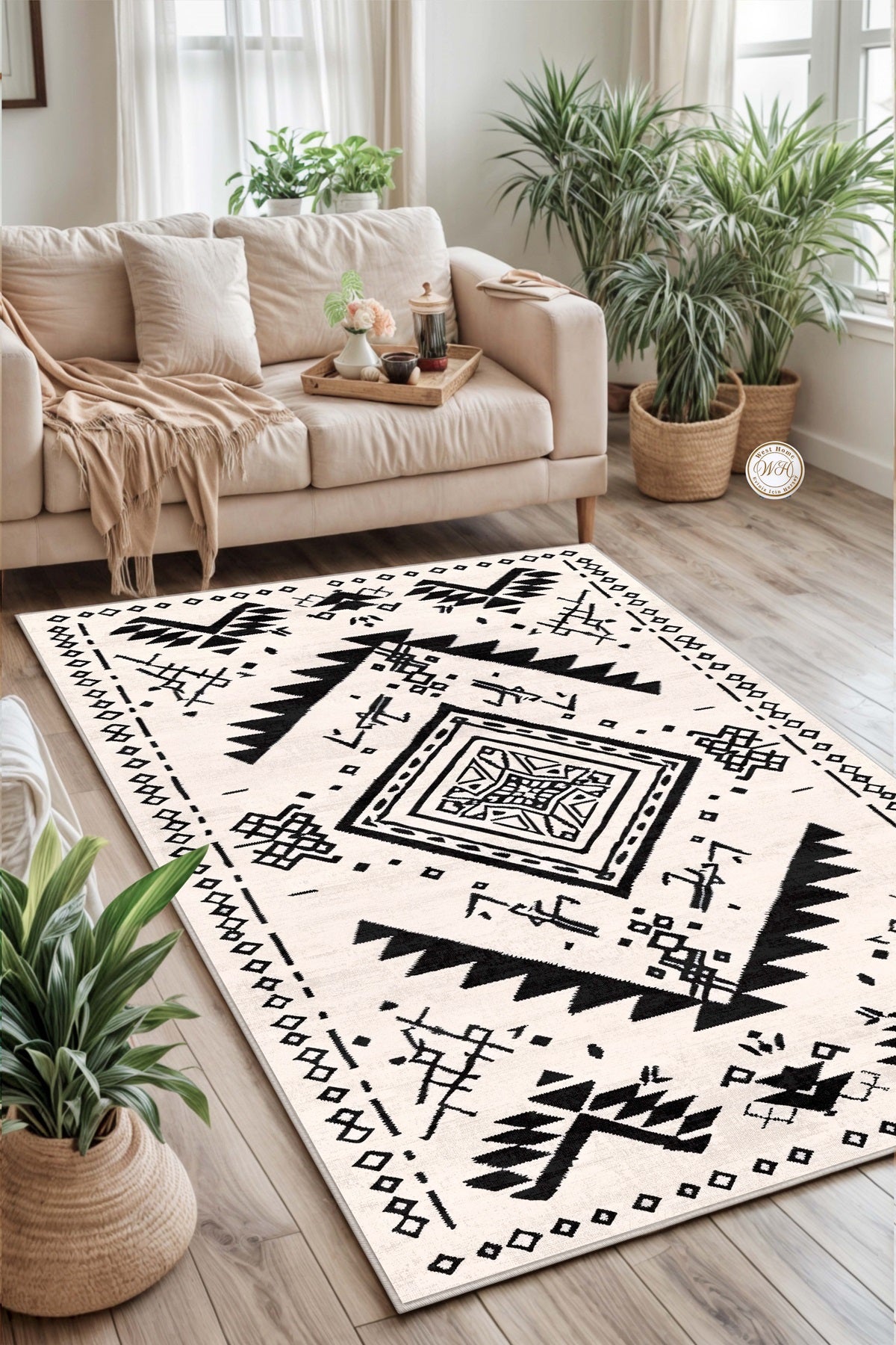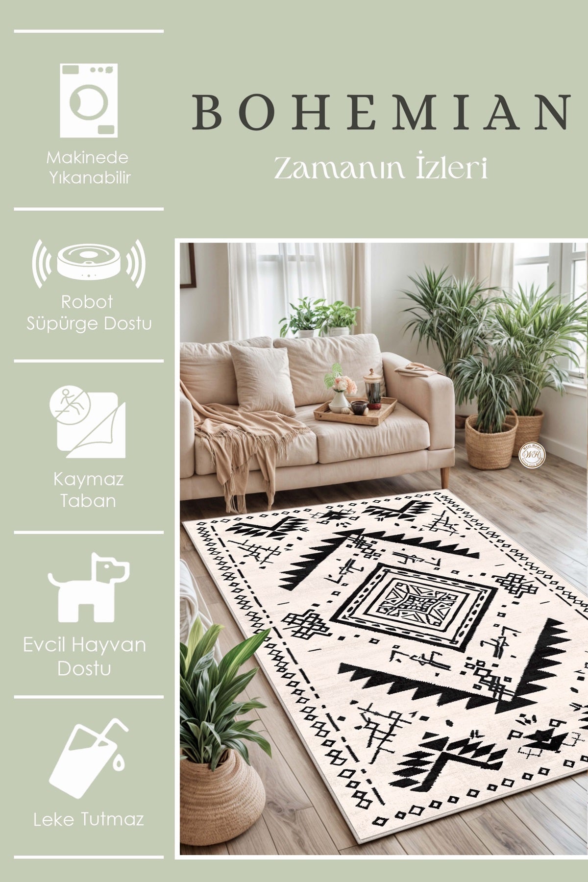 West Home Dijital Baskılı Yıkanabilir Kaymaz Taban Salon, Mutfak ve Yolluk Halısı-631 White
