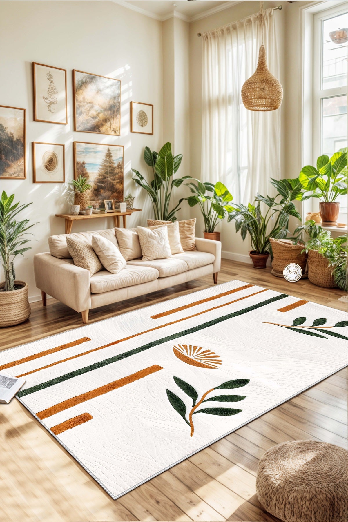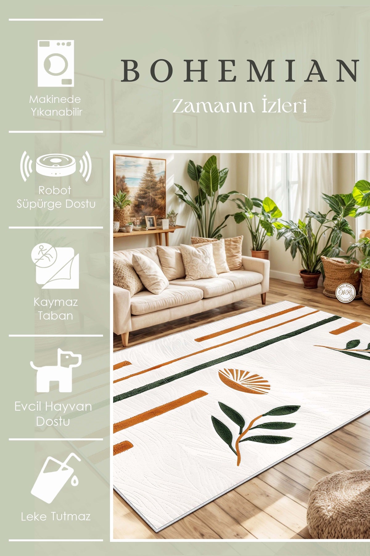 West Home Dijital Baskılı Yıkanabilir Kaymaz Taban Salon, Mutfak ve Yolluk Halısı-632 White