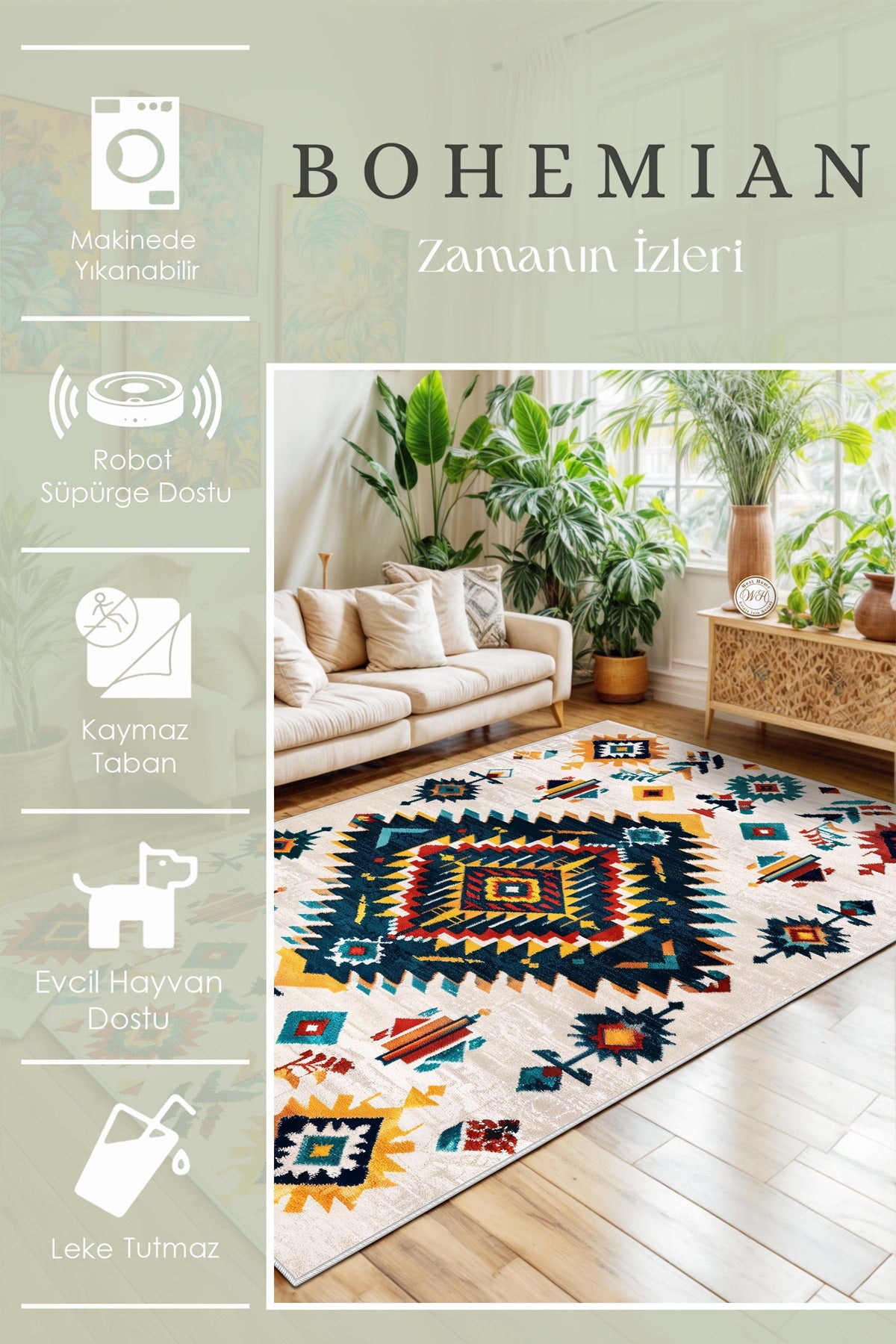 West Home Dijital Baskılı Yıkanabilir Kaymaz Taban Salon, Mutfak ve Yolluk Halısı-643 Multy