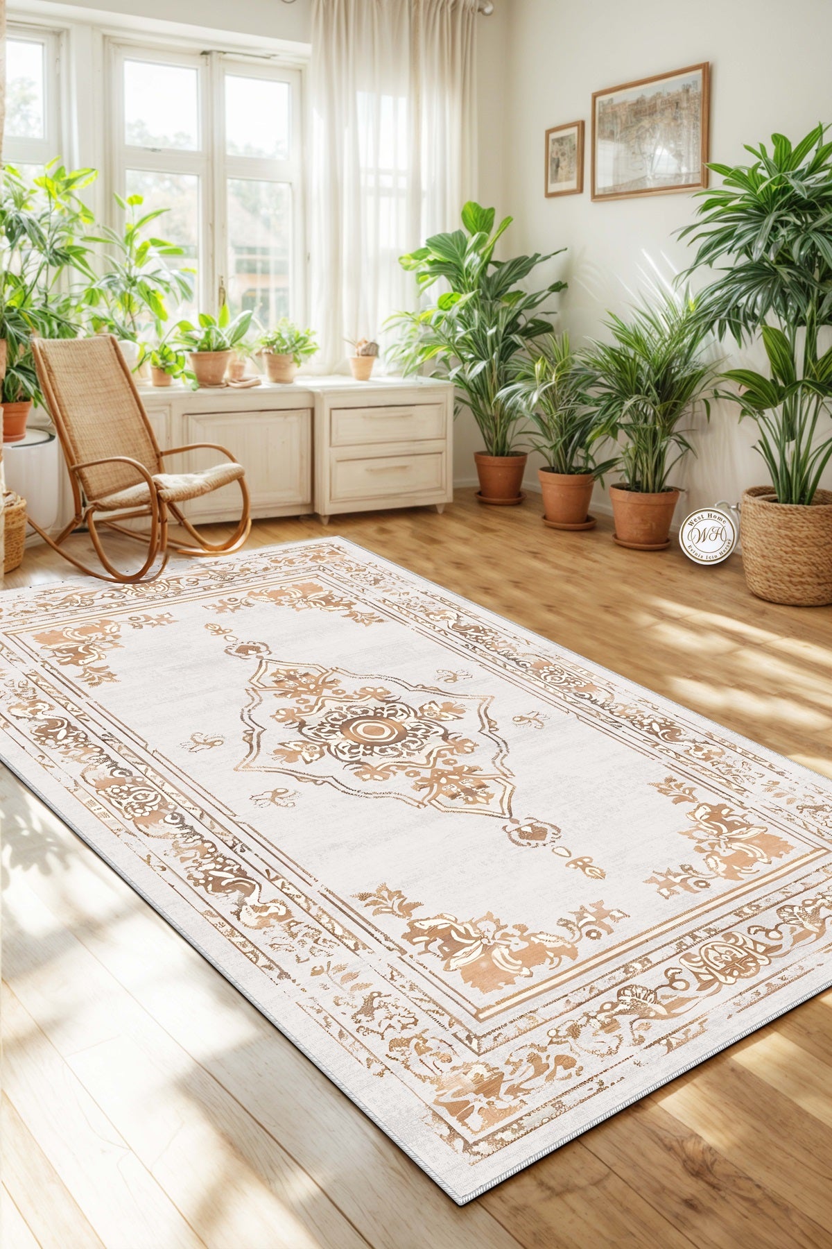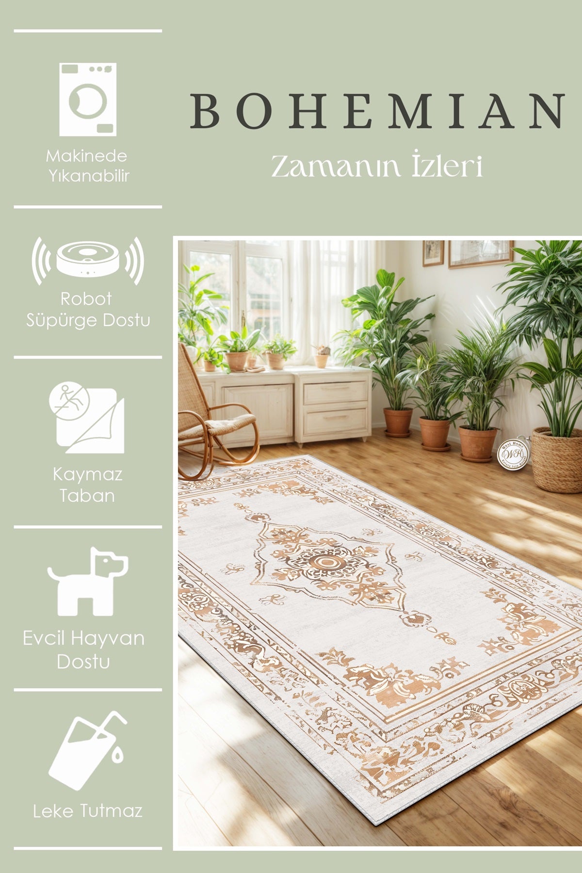 West Home Dijital Baskılı Yıkanabilir Kaymaz Taban Salon, Mutfak ve Yolluk Halısı-455 Beige
