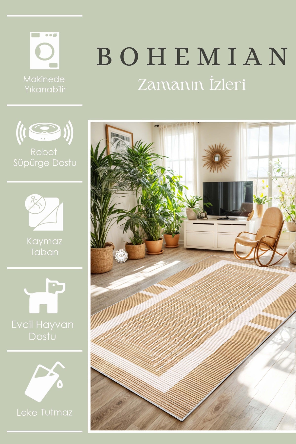 West Home Dijital Baskılı Yıkanabilir Kaymaz Taban Salon, Mutfak ve Yolluk Halısı-455 Beige