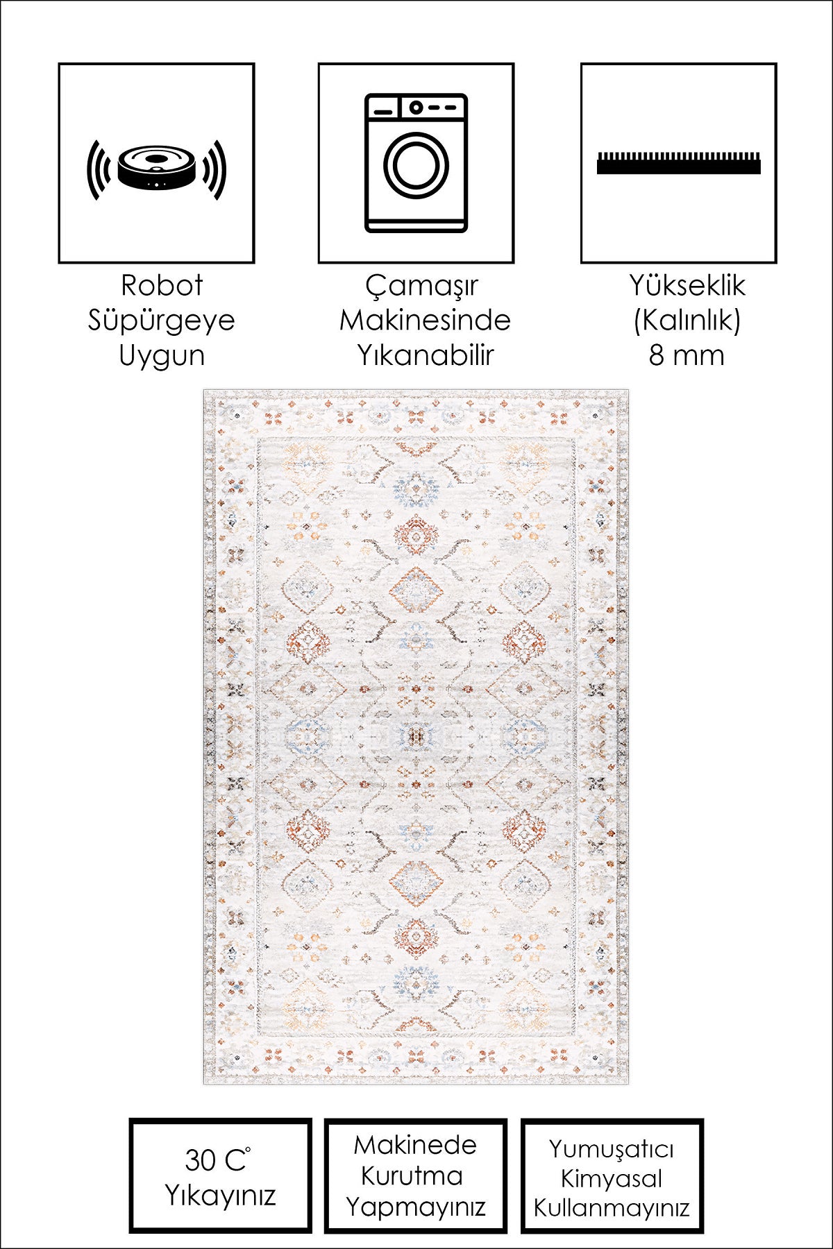 West Home Dijital Baskılı Yıkanabilir Kaymaz Taban Salon, Mutfak ve Yolluk Halısı-455 Beige