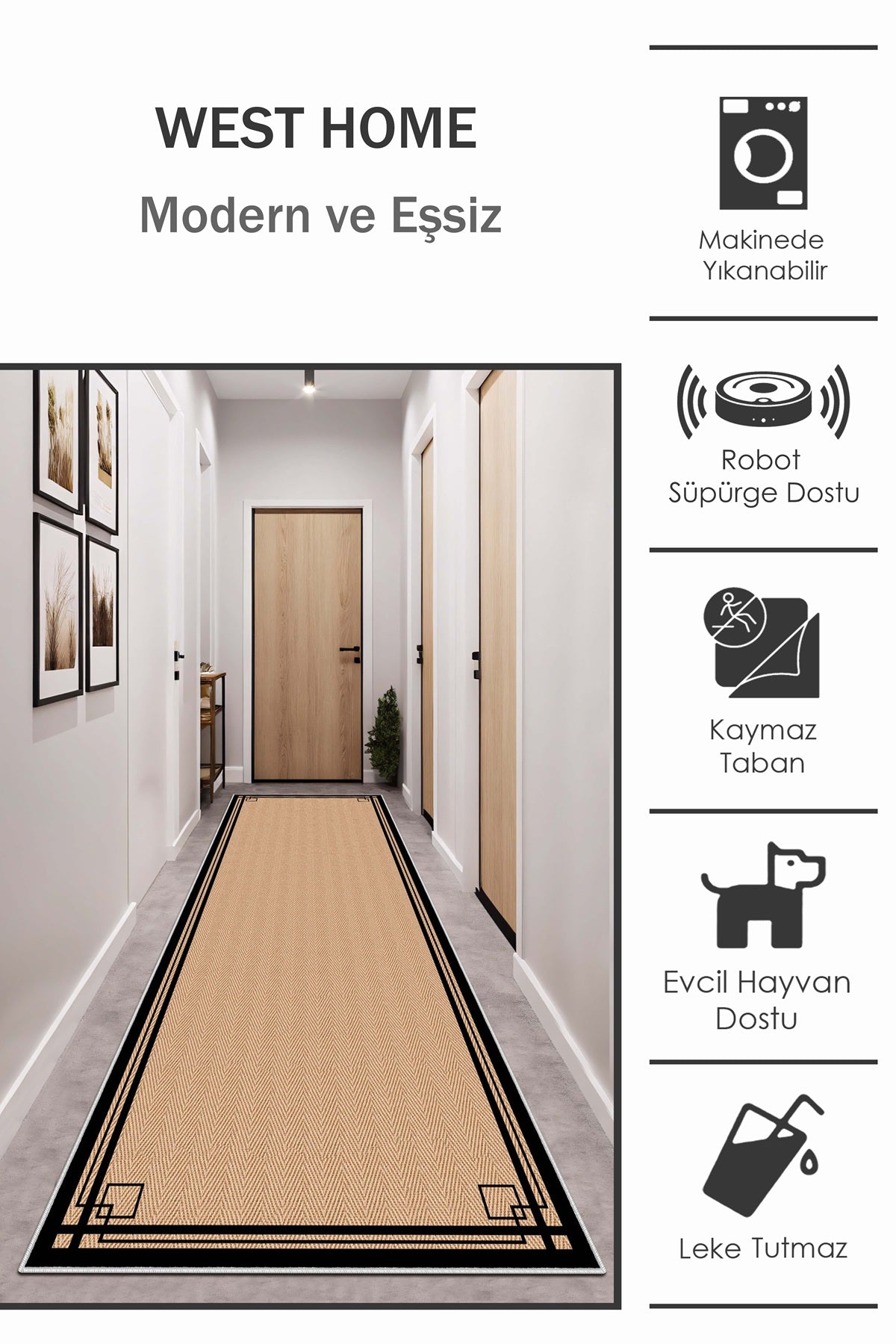 West Home Dijital Baskılı Yıkanabilir Kaymaz Taban Salon, Mutfak ve Yolluk Halısı-455 Beige