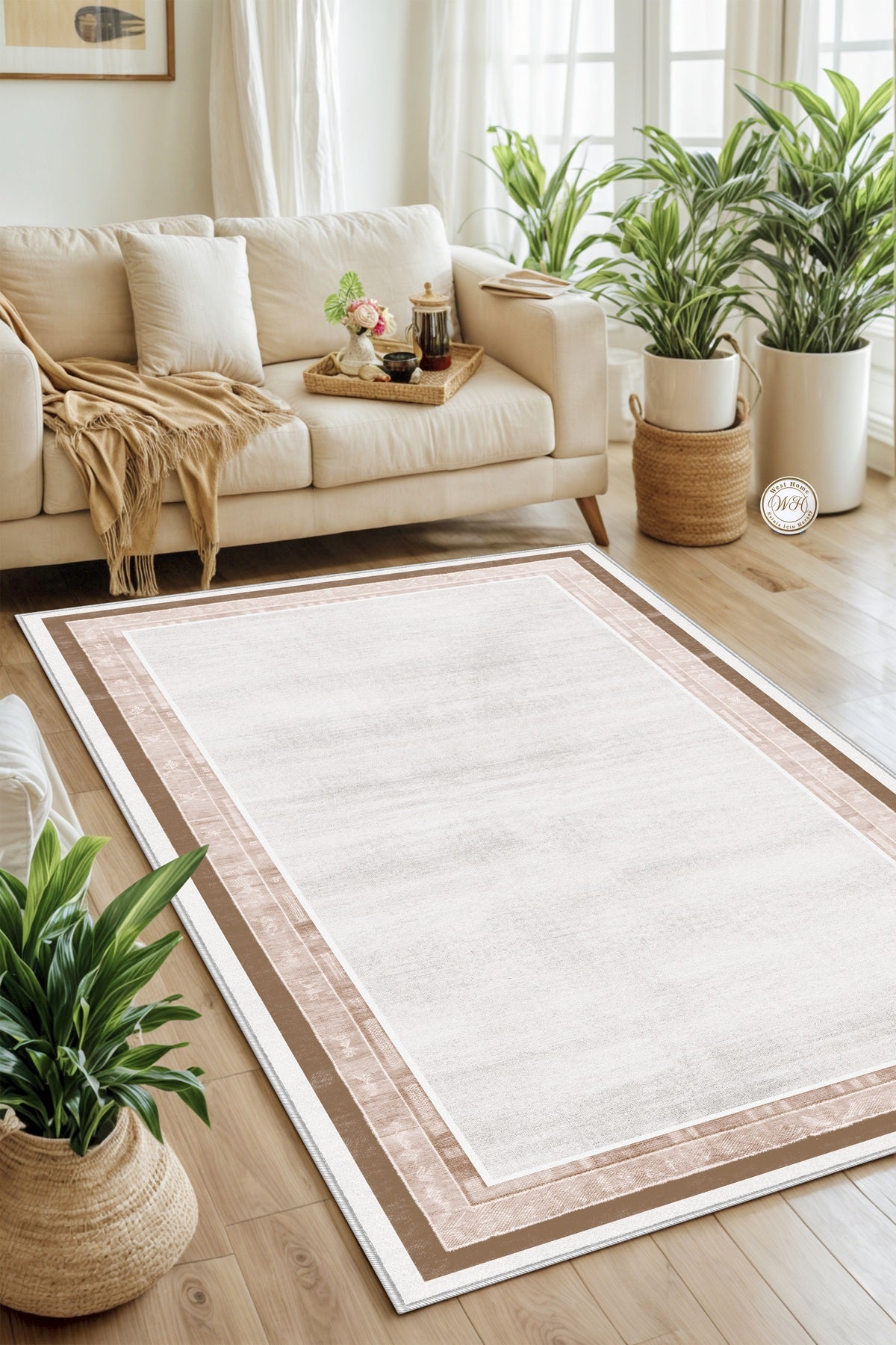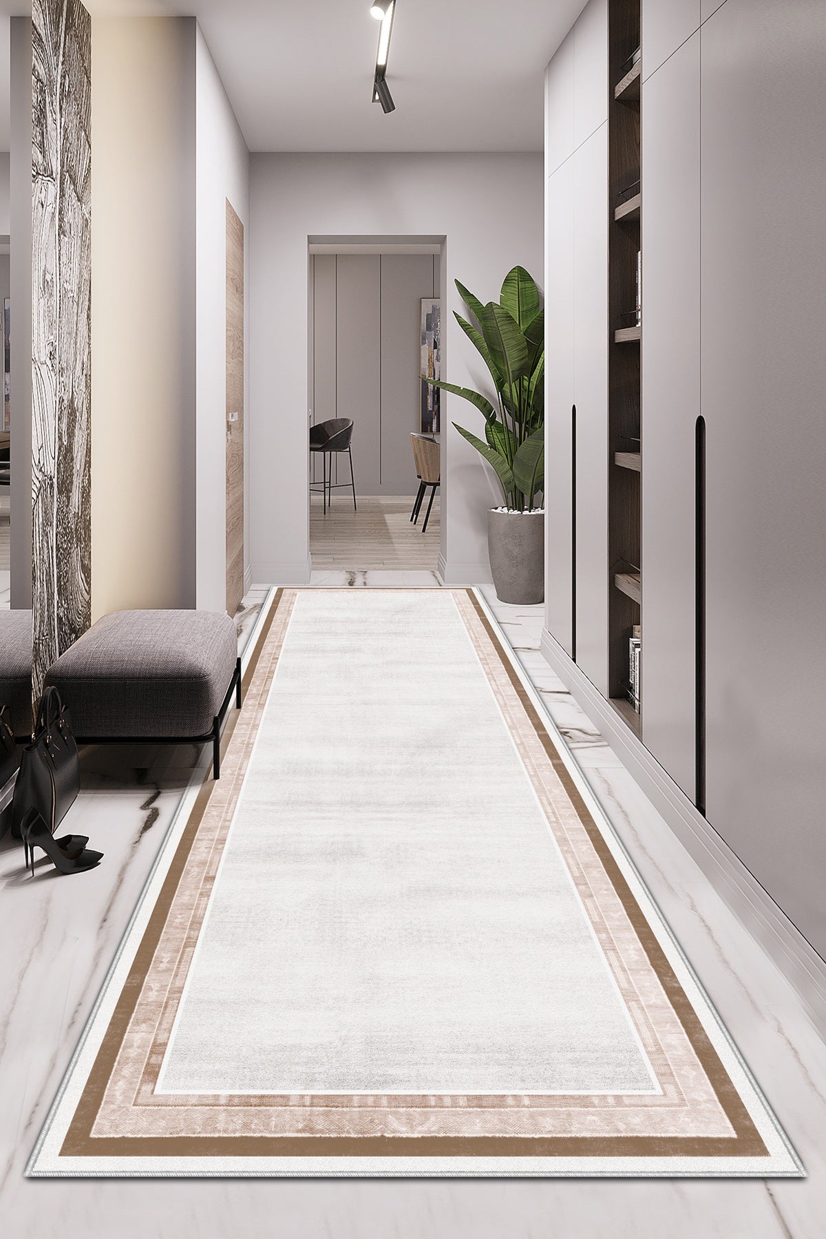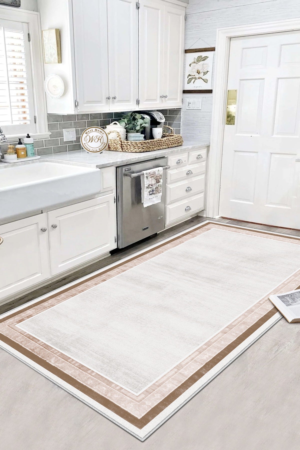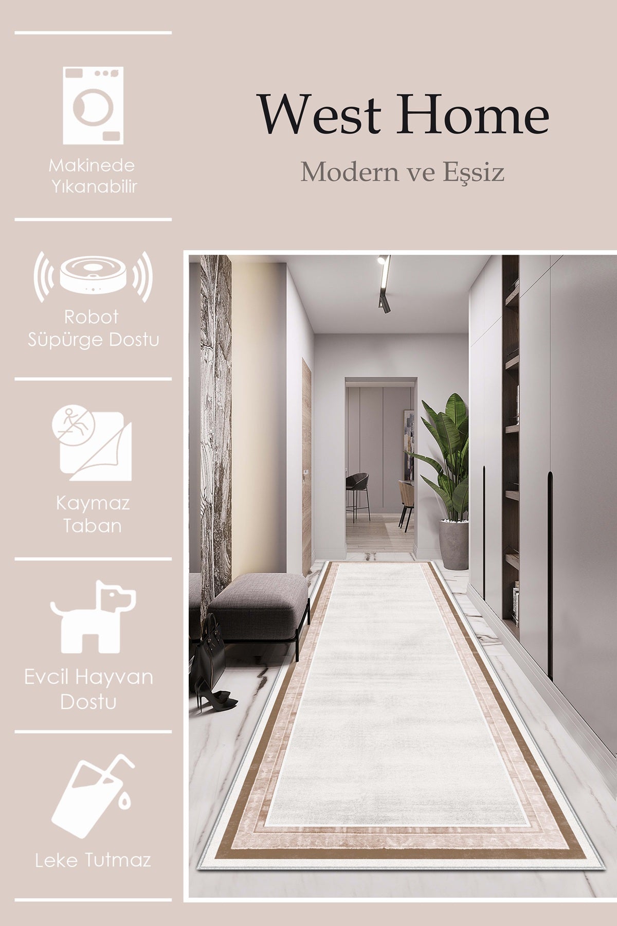 West Home Dijital Baskılı Yıkanabilir Kaymaz Taban Salon, Mutfak ve Yolluk Halısı-455 Beige