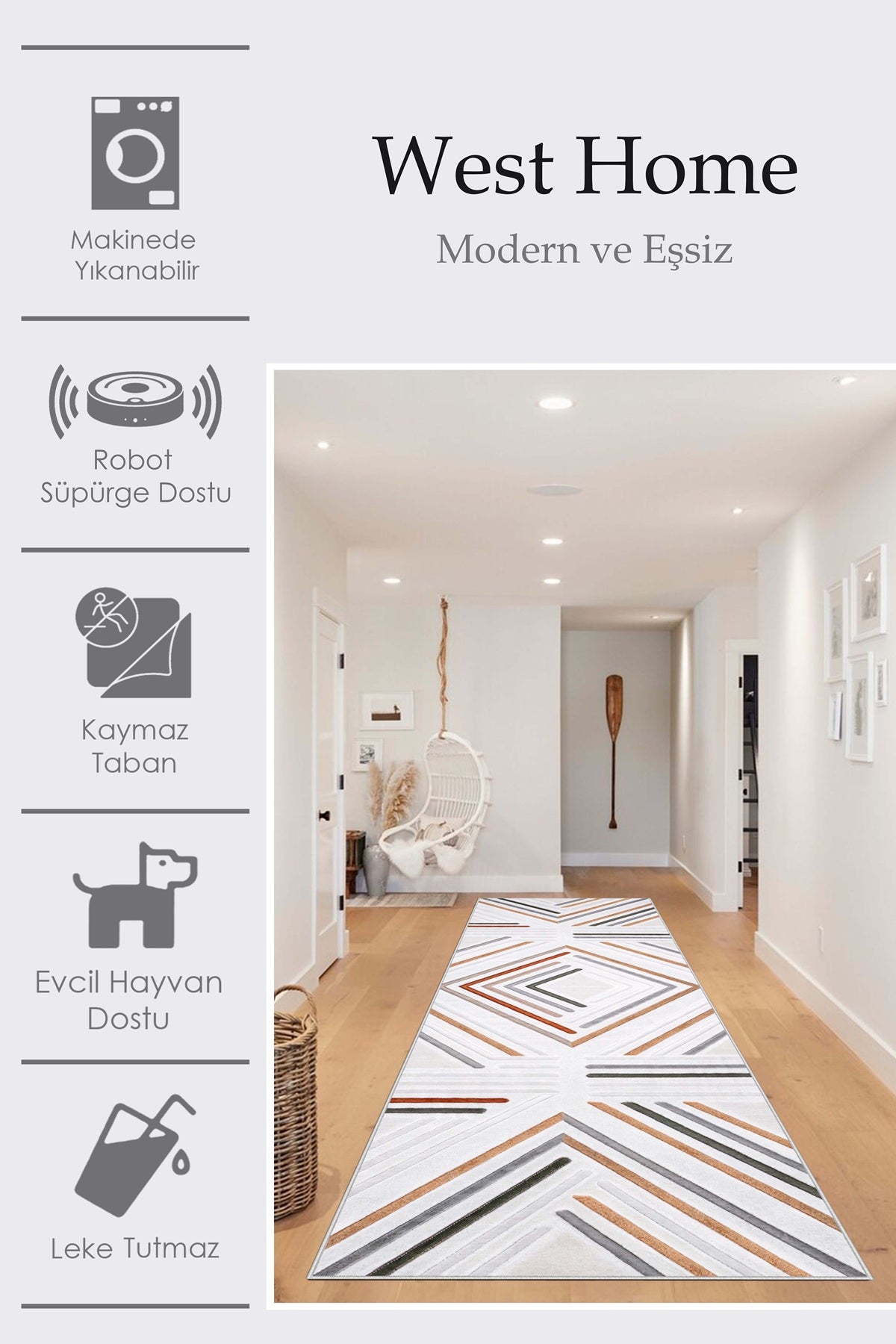 West Home Dijital Baskılı Yıkanabilir Kaymaz Taban Salon, Mutfak ve Yolluk Halısı-662 Multy