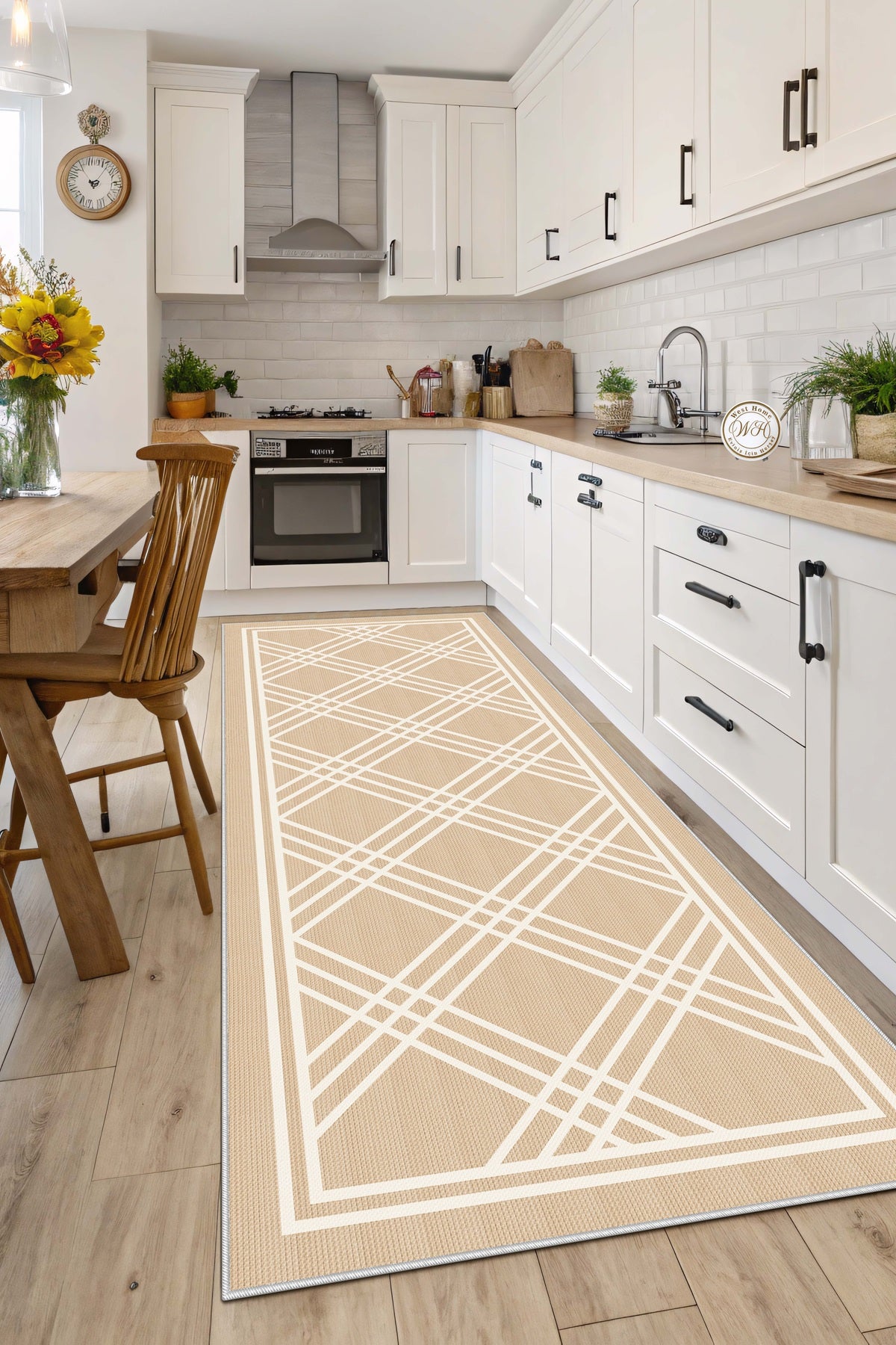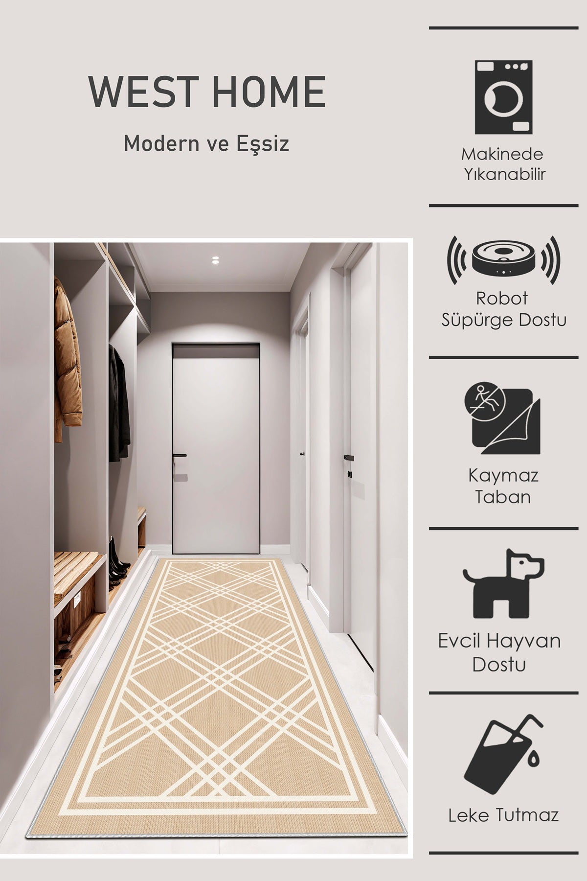 West Home Dijital Baskılı Yıkanabilir Kaymaz Taban Salon, Mutfak ve Yolluk Halısı-455 Beige