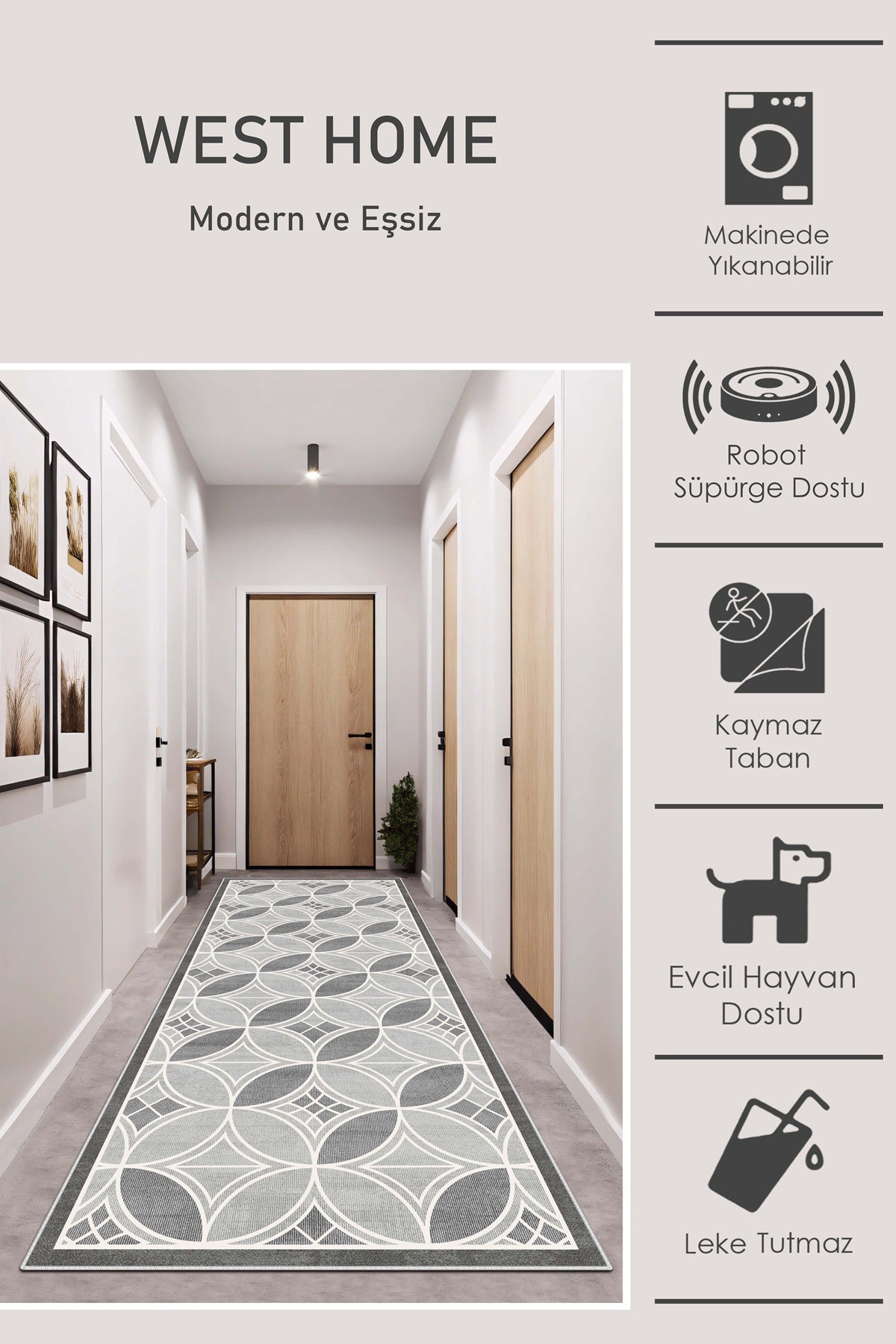 West Home Dijital Baskılı Yıkanabilir Kaymaz Taban Salon, Mutfak ve Yolluk Halısı-445 Grey