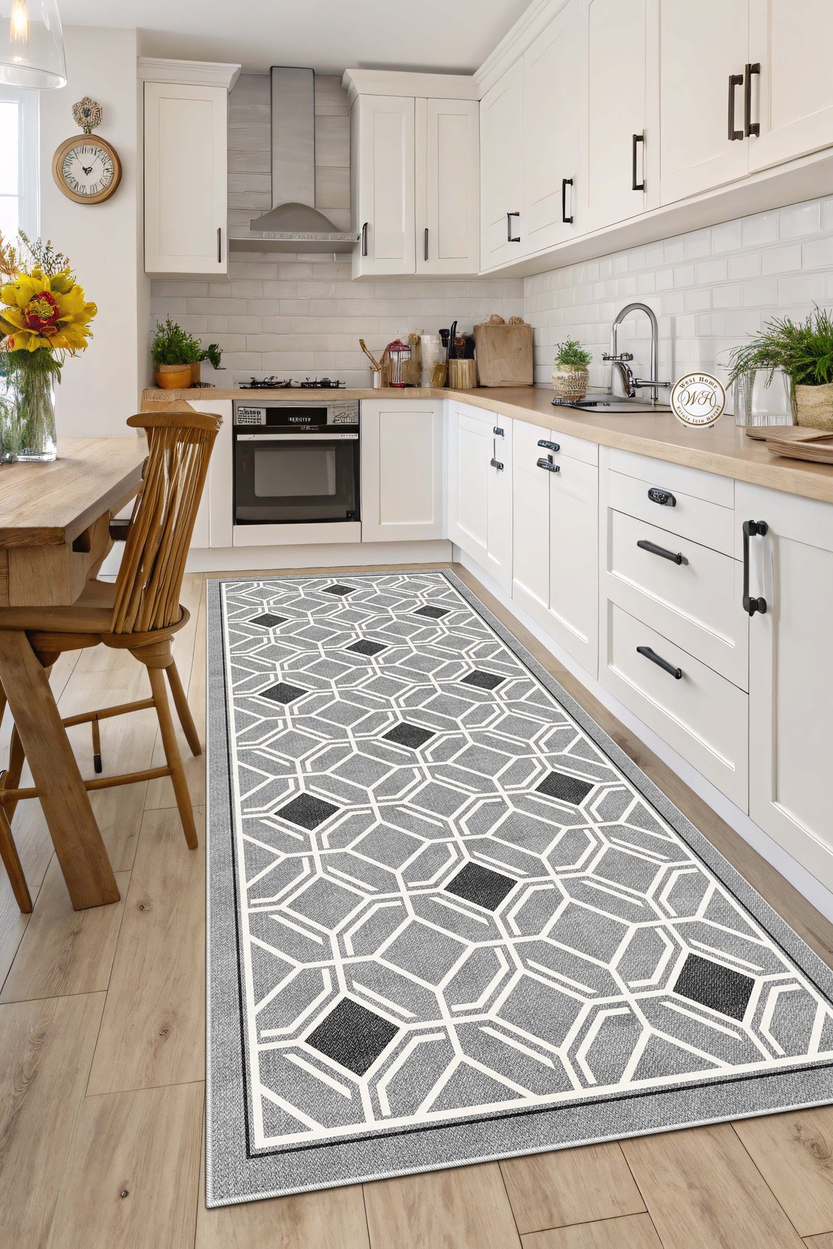West Home Dijital Baskılı Yıkanabilir Kaymaz Taban Salon, Mutfak ve Yolluk Halısı-445 Grey